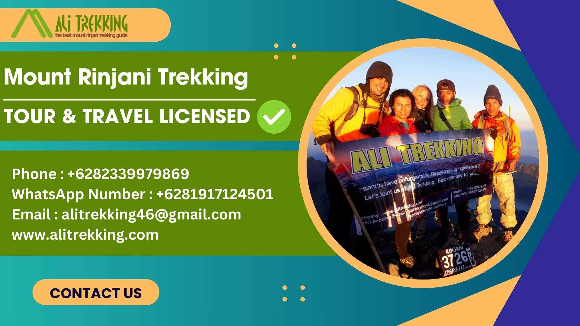 Find ultimate Rinjani trekking tour packages with Ali Trekking. Professional guides and incredible views guaranteed. Phone : +6282339979869WhatsApp Number : +6281917124501Email : alitrekking46@gmail.com TOUR & TRAVEL LICENSEDCV. ALI TREKKING LOMBOKW25.U1/337/HK.03/3/2017 National Park ( IUPJWA ) Number :SK. 687/T. 39/TU /KSA/5/2018