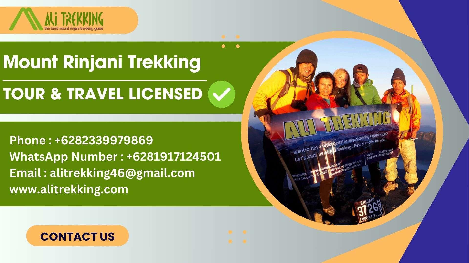 Choose unique adventure packages for Rinjani trekking with Ali Trekking. Enjoy professional guidance and breathtaking views. Phone : +6282339979869WhatsApp Number : +6281917124501Email : alitrekking46@gmail.com TOUR & TRAVEL LICENSEDCV. ALI TREKKING LOMBOKW25.U1/337/HK.03/3/2017 National Park ( IUPJWA ) Number :SK. 687/T. 39/TU /KSA/5/2018