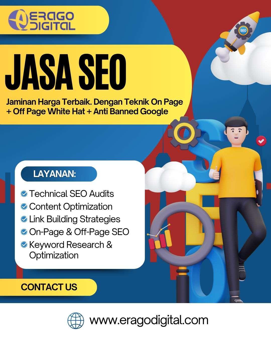 PT Erago Digital menyediakan layanan jasa SEO onpage yang akan membuat struktur dan konten website Anda ramah mesin pencari. Kami melakukan optimalisasi elemen-elemen penting seperti meta tag, heading, kecepatan loading, hingga internal linking, sehingga performa SEO Anda semakin maksimal. Layanan ini sangat cocok bagi Anda yang ingin meningkatkan visibilitas website secara organik dan berkelanjutan. Kami memiliki tim ahli SEO dengan pengalaman bertahun-tahun di bidangnya. Tingkatkan kualitas SEO onpage Anda sekarang juga bersama PT Erago Digital. Info lebih lanjut, silakan hubungi TLP/WA 081222555757.