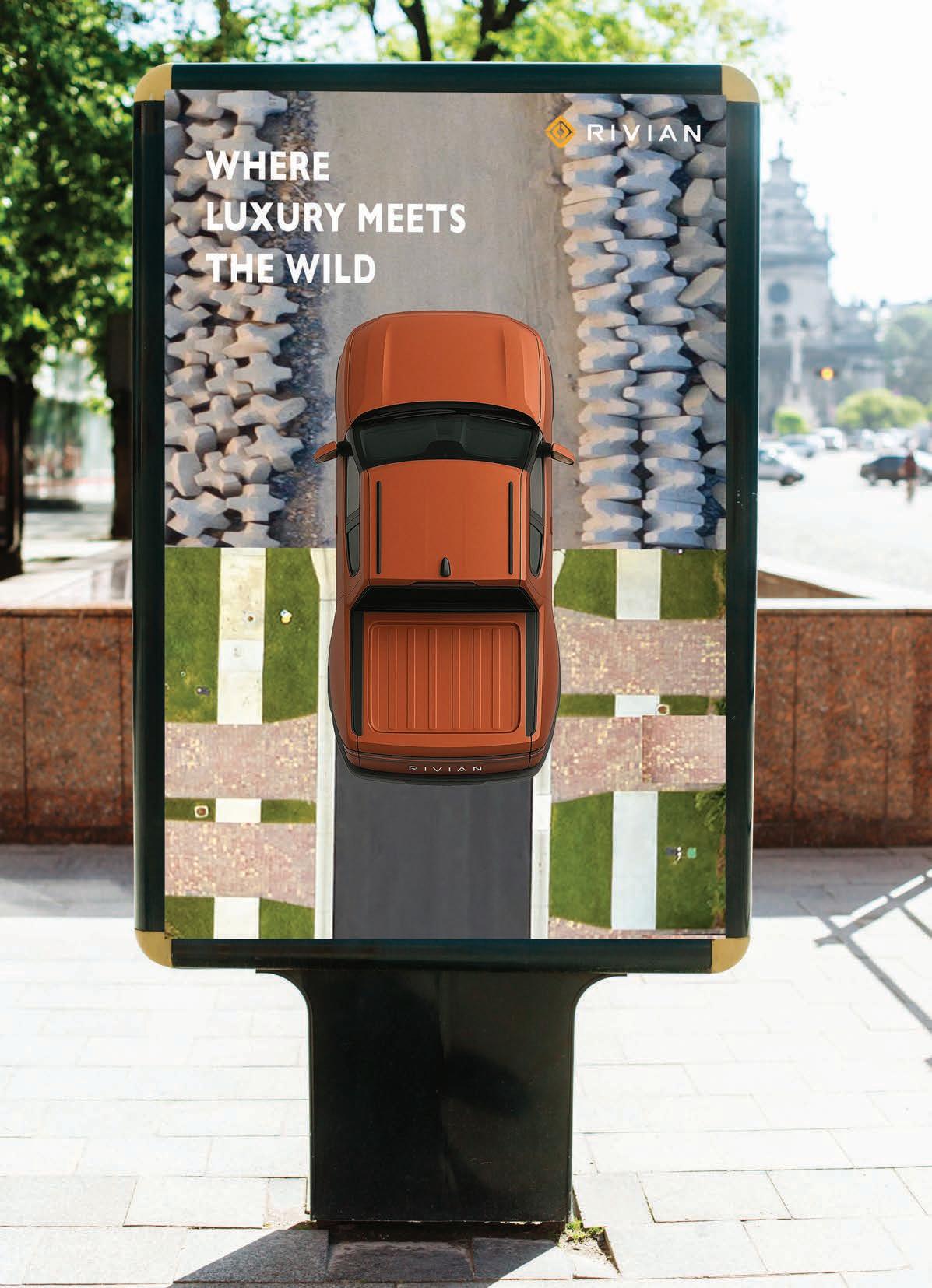 ture-ready electric vehicle—combining rugged capability with premium comfort. Designed for urban explorers who crave the outdoors, Rivian bridges the gap between city life and nature, empowering drivers to venture off the beaten path without sacrificing style or sustainability. The goal of this campaign is to showcase Rivian as more than just a mode of transportation; it’s a lifestyle choice for those who seek freedom, adventure, and eco-conscious luxury, making every journey—whether across town or deep into the wild, effortless and inspiring.
