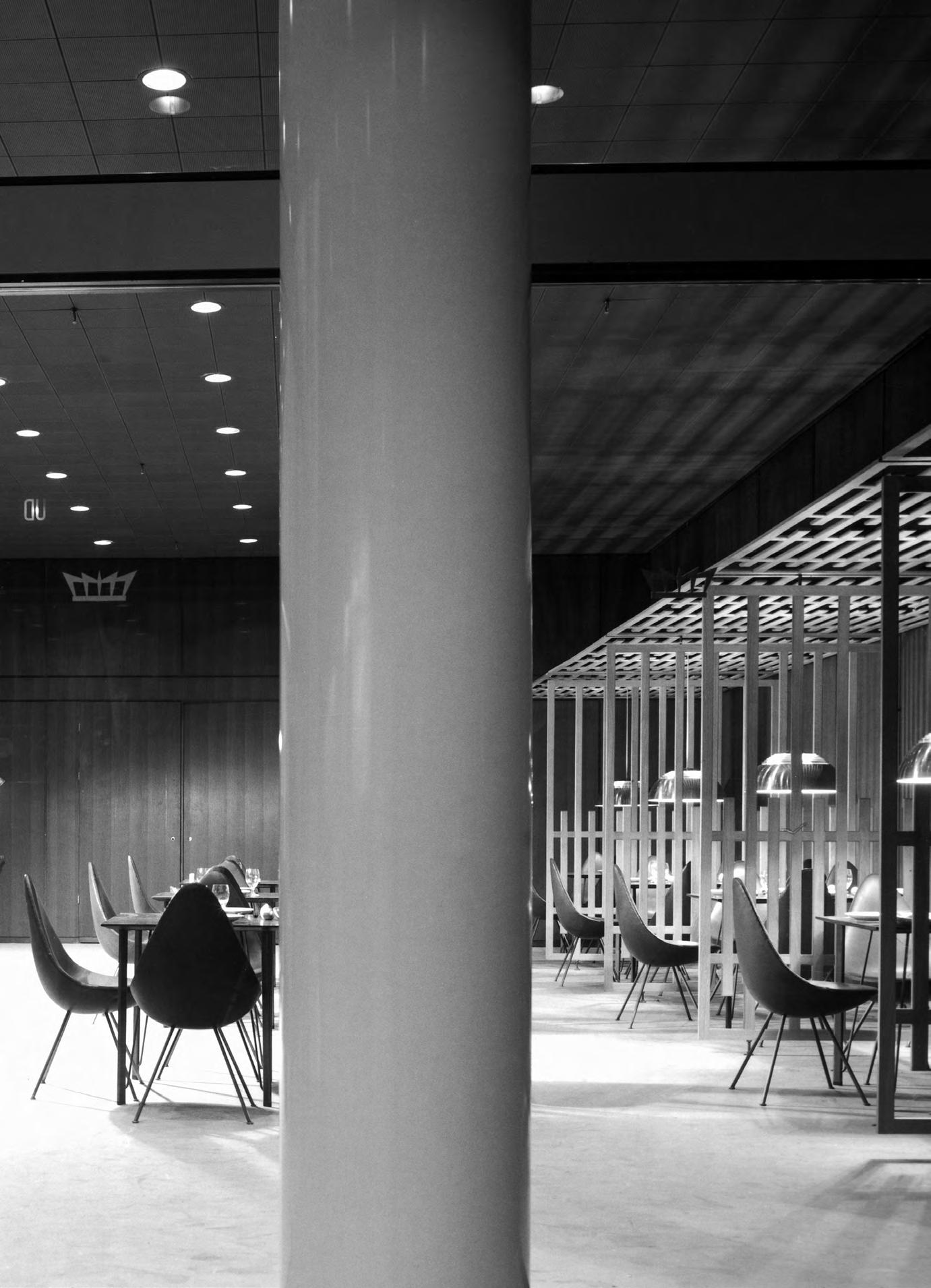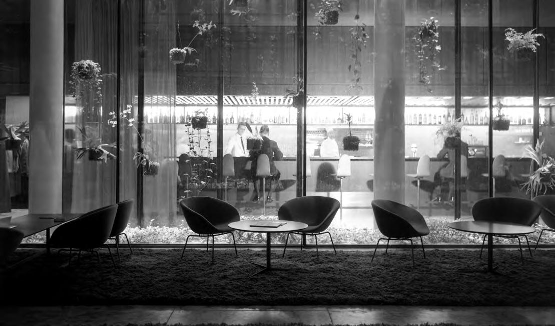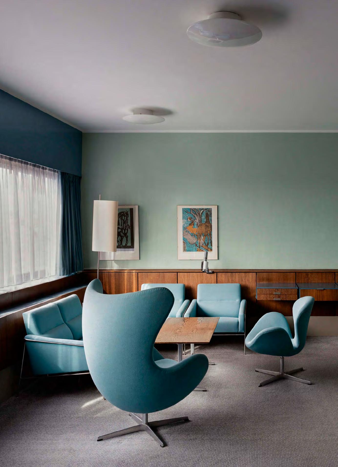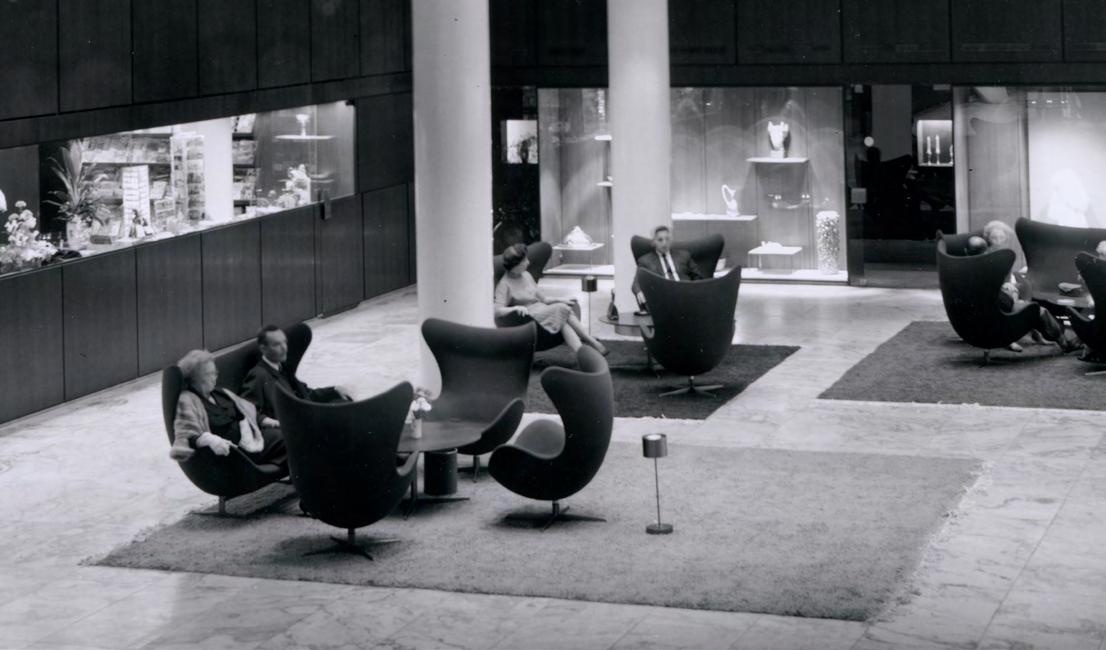 The 1960s lobby in the SAS Royal Hotel is in many ways similar to the lobby of the hotel today. Floor-to-ceiling glass panes separate the lobby and restaurant from the hustle and bustle of the outside streets. The iconic Egg™ and Swan™ chairs, which were specially designed for the hotel, match the pleasant calm of the room. SAS Royal Hotel (today Radisson Collection Royal Hotel).