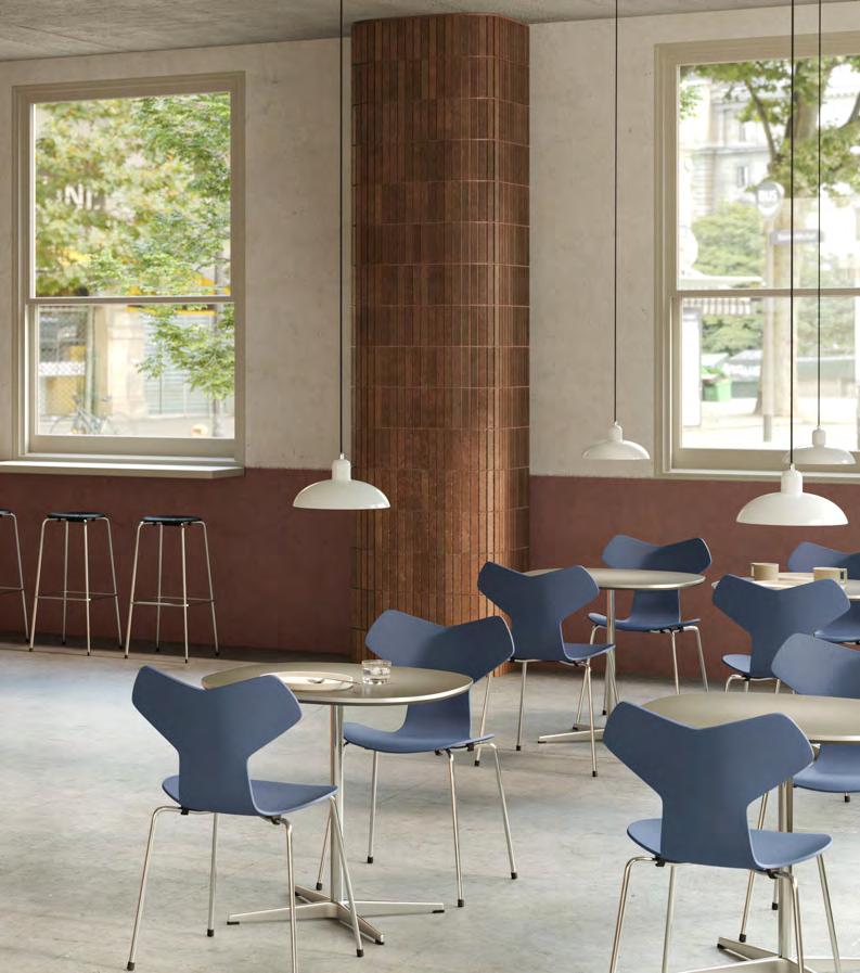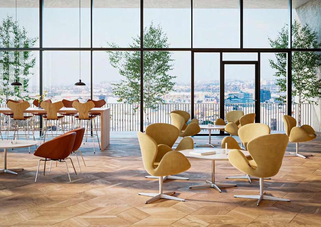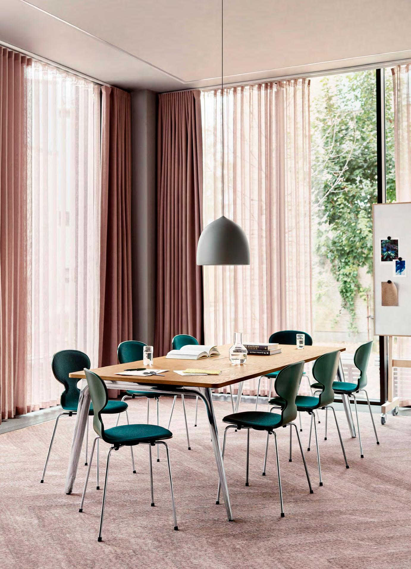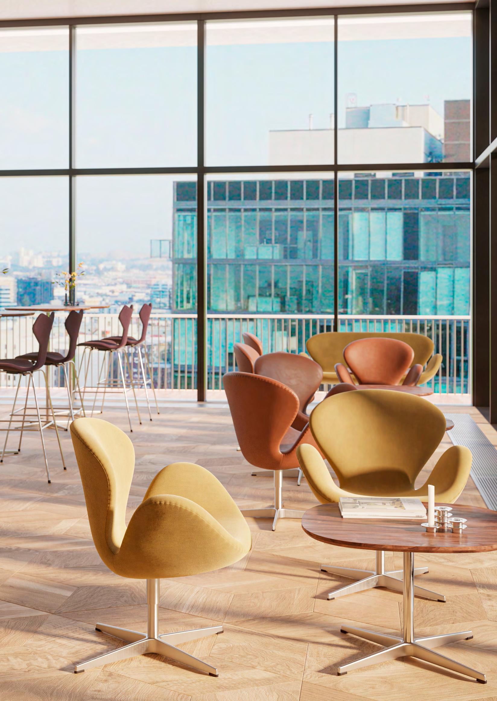 That is why at Fritz Hansen we don’t simply make furniture; we create spaces. Whether in an office, hotel lobby or restaurant, our aim is to connect architecture and design as a whole. The way that objects, lighting and technology sit amid their wider context shapes our mood and motivation, which is why we work closely with clients to create customised spaces that suit organisational cul-tures and purposes.