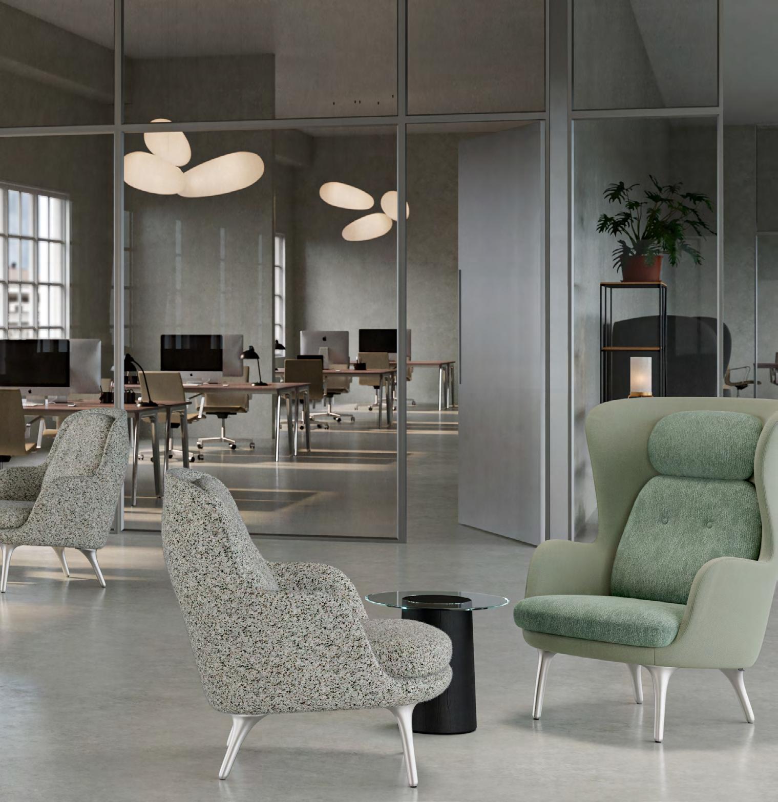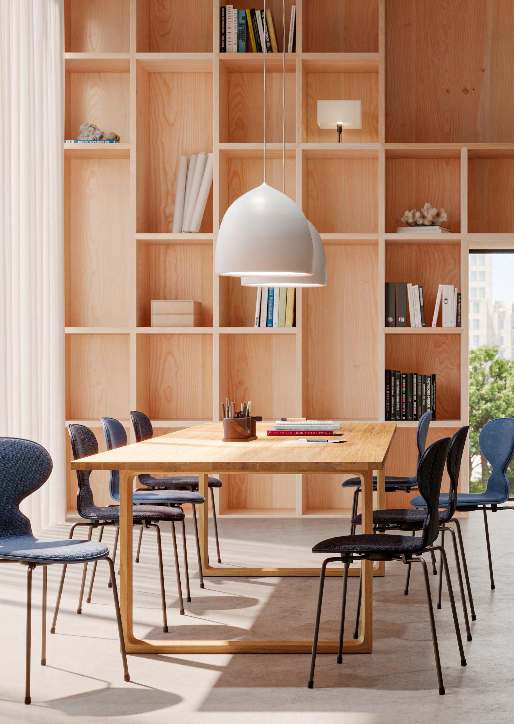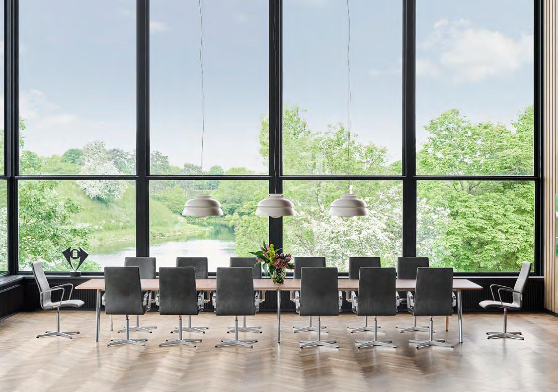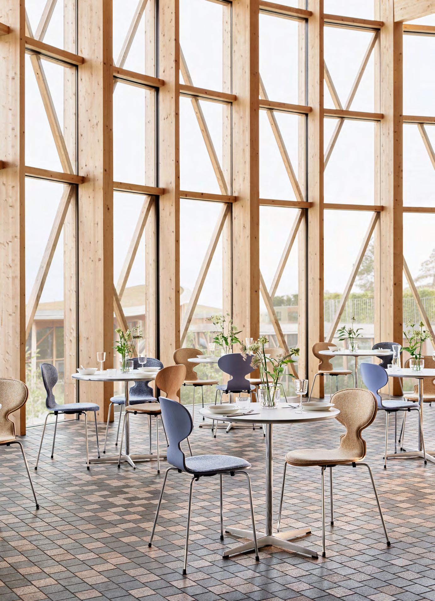 That is why at Fritz Hansen we don’t simply make furniture; we create spaces. Whether in an office, hotel lobby or restaurant, our aim is to connect architecture and design as a whole. The way that objects, lighting and technology sit amid their wider context shapes our mood and motivation, which is why we work closely with clients to create customised spaces that suit organisational cul-tures and purposes.