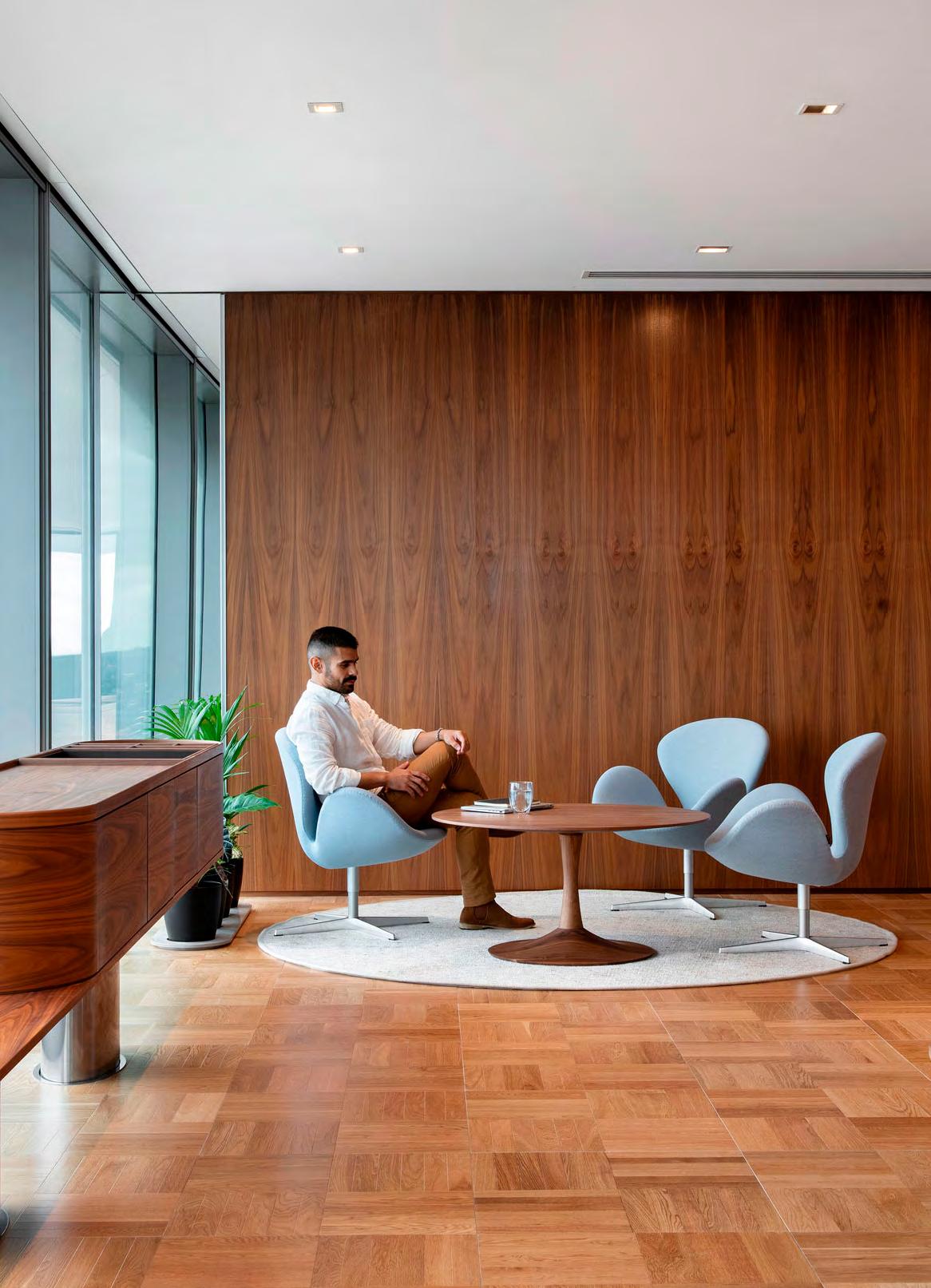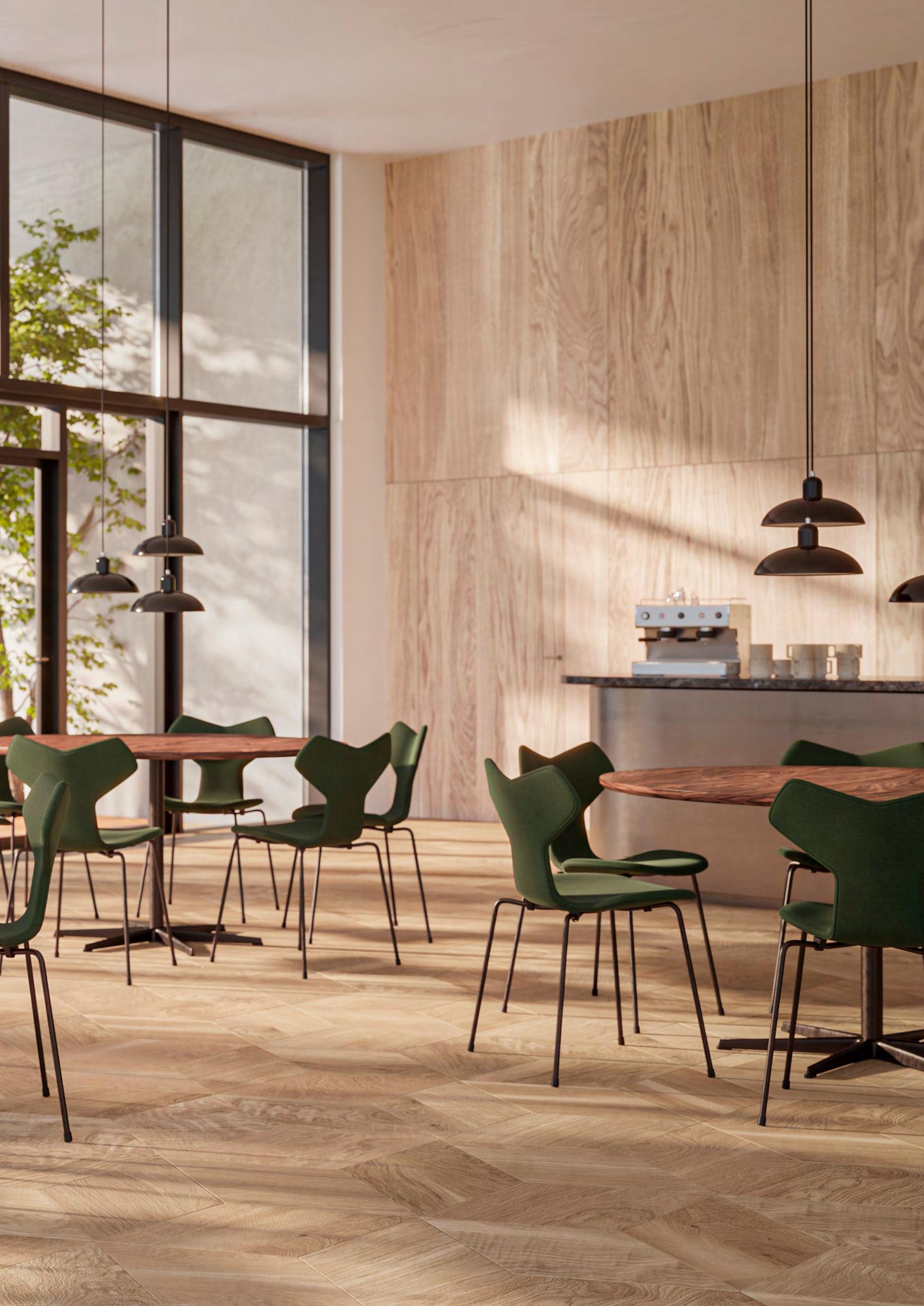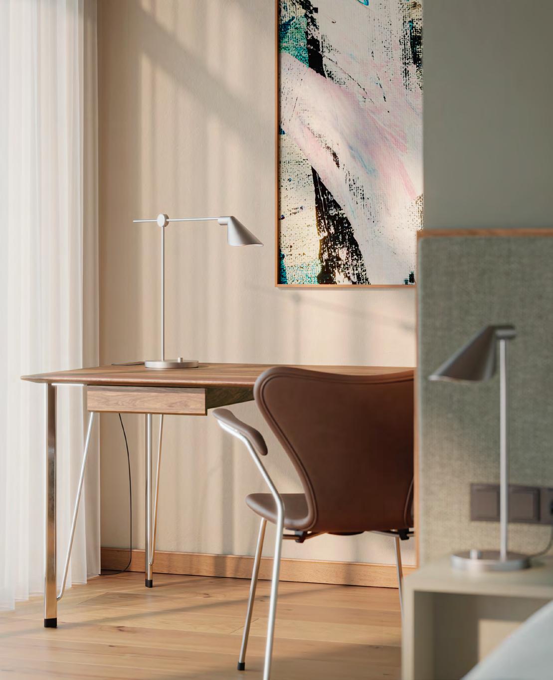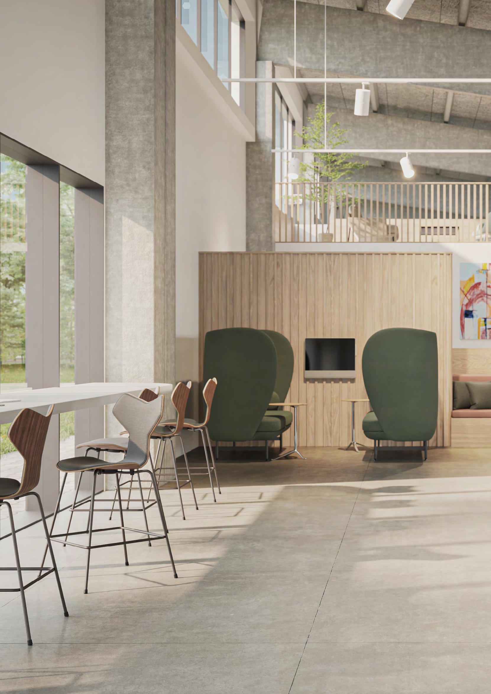 That is why at Fritz Hansen we don’t simply make furniture; we create spaces. Whether in an office, hotel lobby or restaurant, our aim is to connect architecture and design as a whole. The way that objects, lighting and technology sit amid their wider context shapes our mood and motivation, which is why we work closely with clients to create customised spaces that suit organisational cul-tures and purposes.