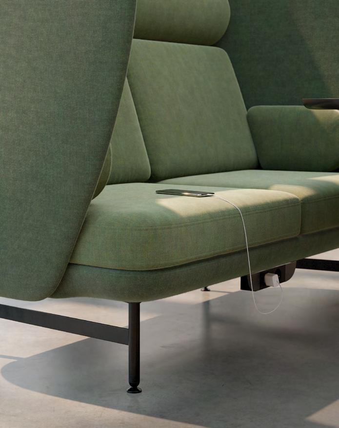 The versatile high-back sofa Plenum™ Cabin comes with various customisation possibilities including an integrated screen of up to 27” with clever internal cable management for a clean look. An integrated table adds functionality for productive meetings. In addition, Plenum can be customised to suit any office interior with high-quality textiles in wide range of colours, including recycled textile options.