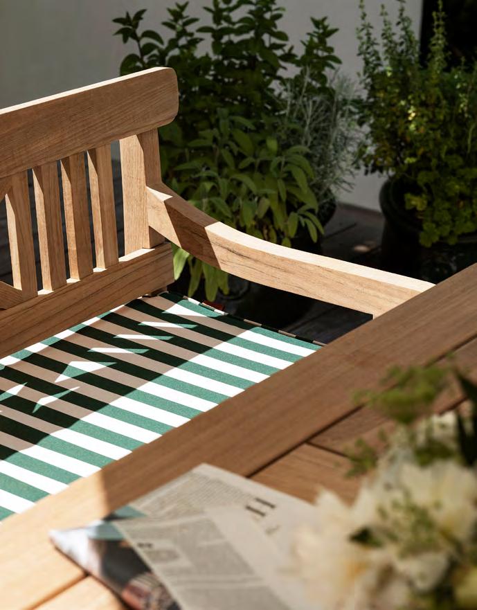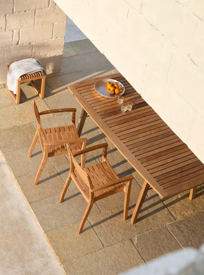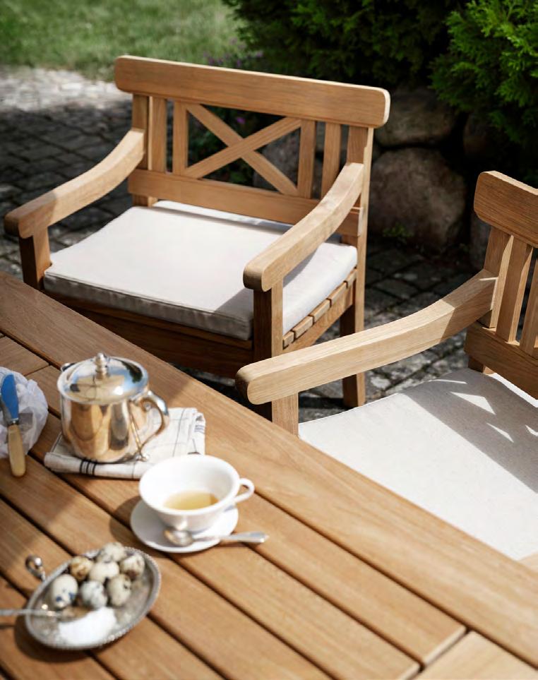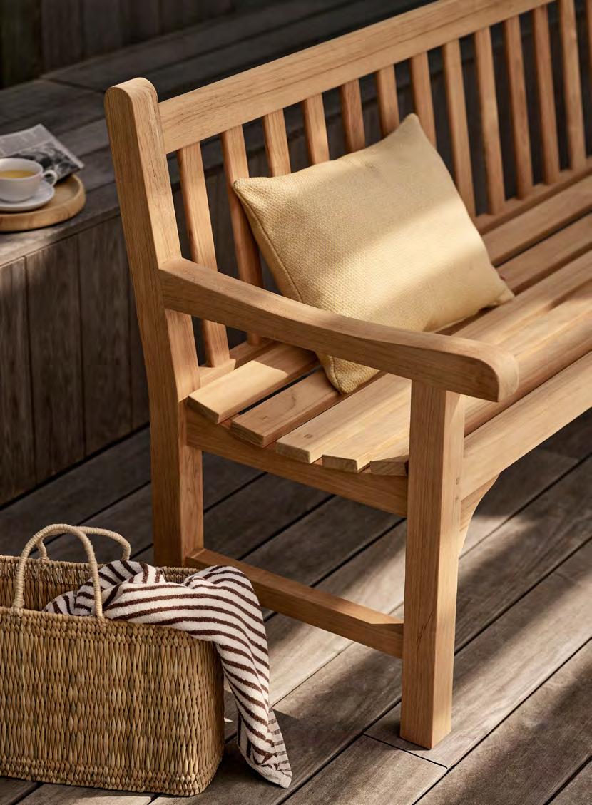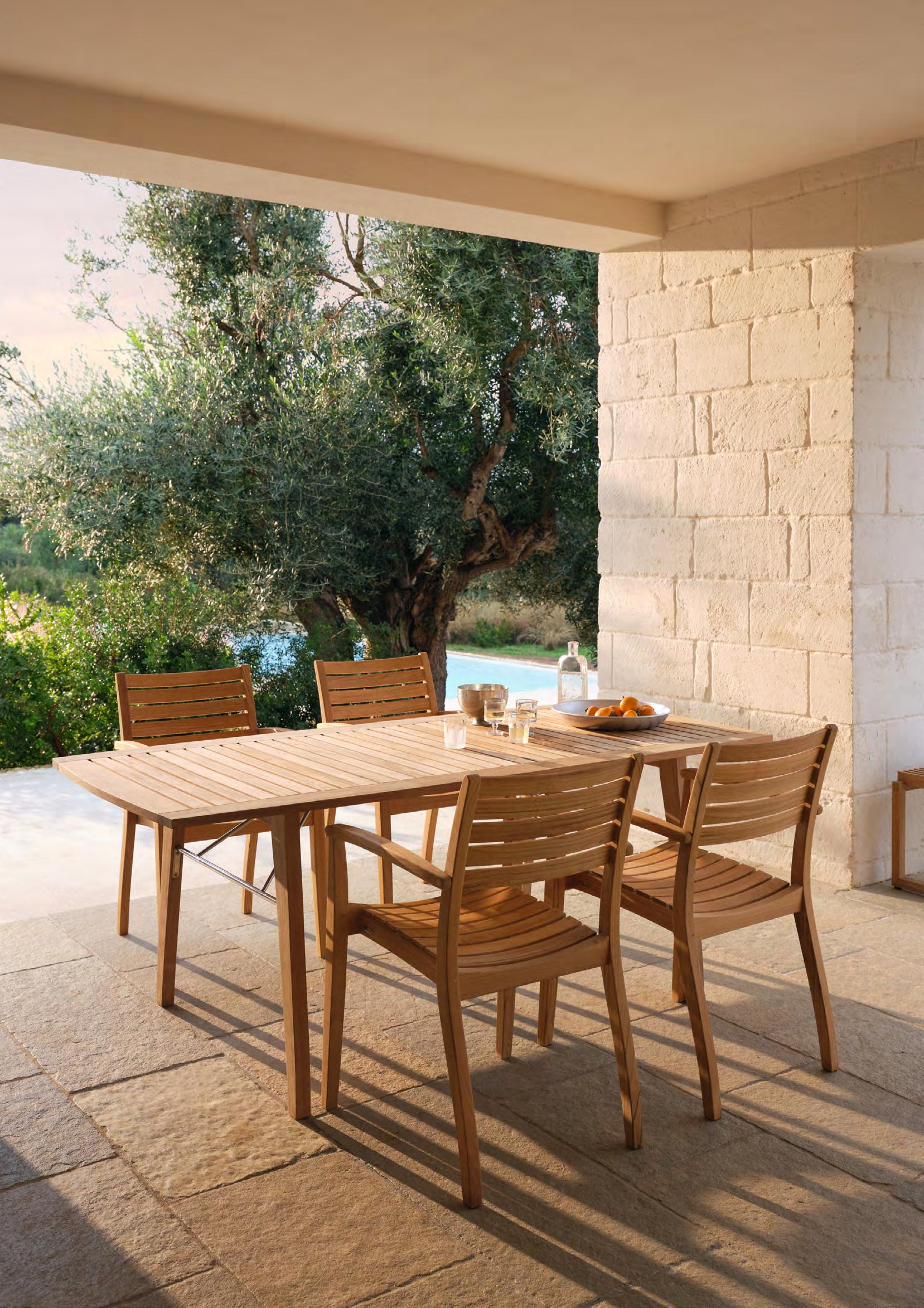 We use teak for most of our outdoor furniture, as it requires little care and maintenance. All of the teak in our outdoor furniture is FSC™-certified. The high content of natural oils makes the teak highly weather and rot resistant and is, therefore, an excellent choice for outdoor furniture. We only use core teak because it is richer in natural oils making it evenly grained, more weather resistant and longer lasting than the outer teak wood.
