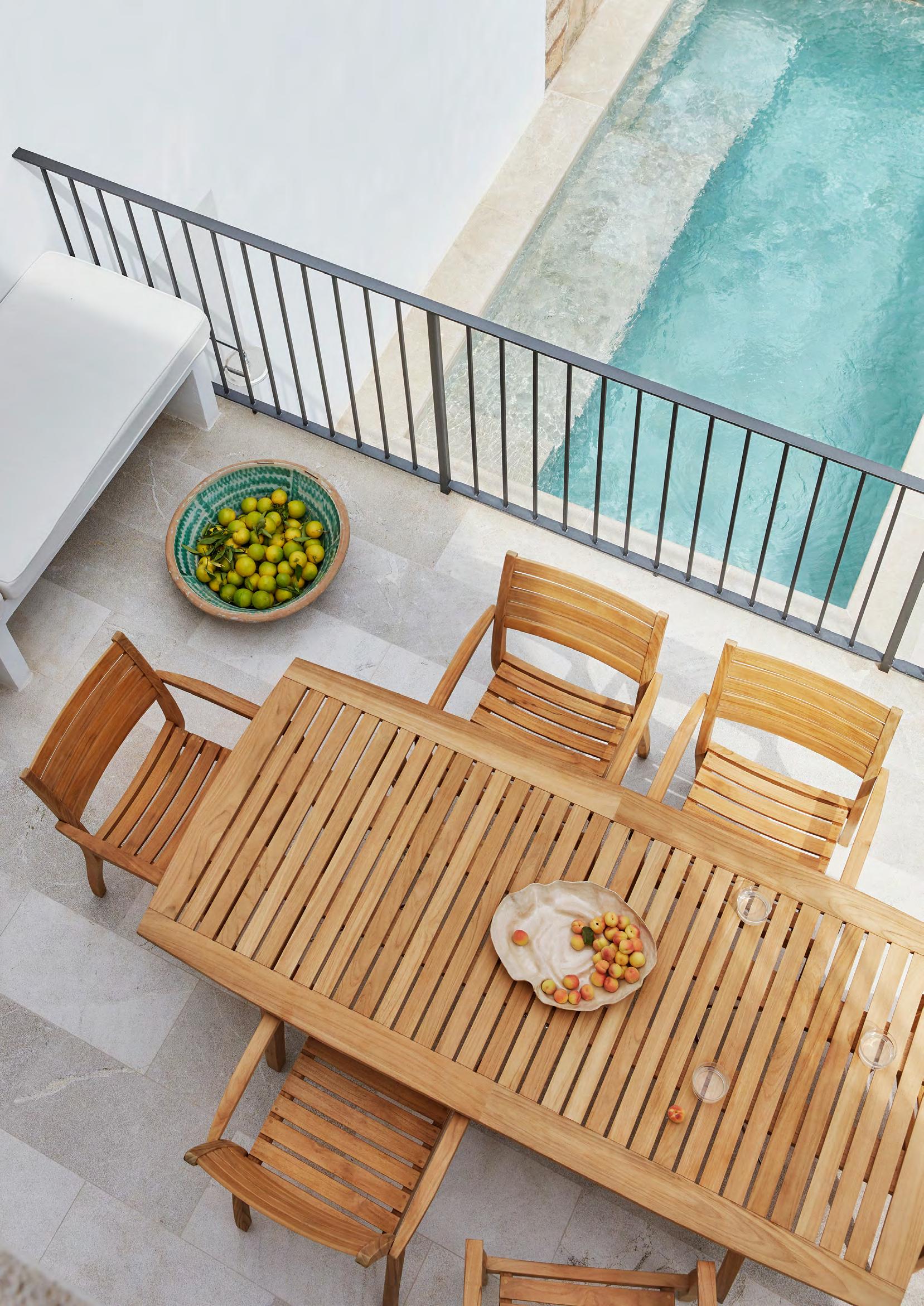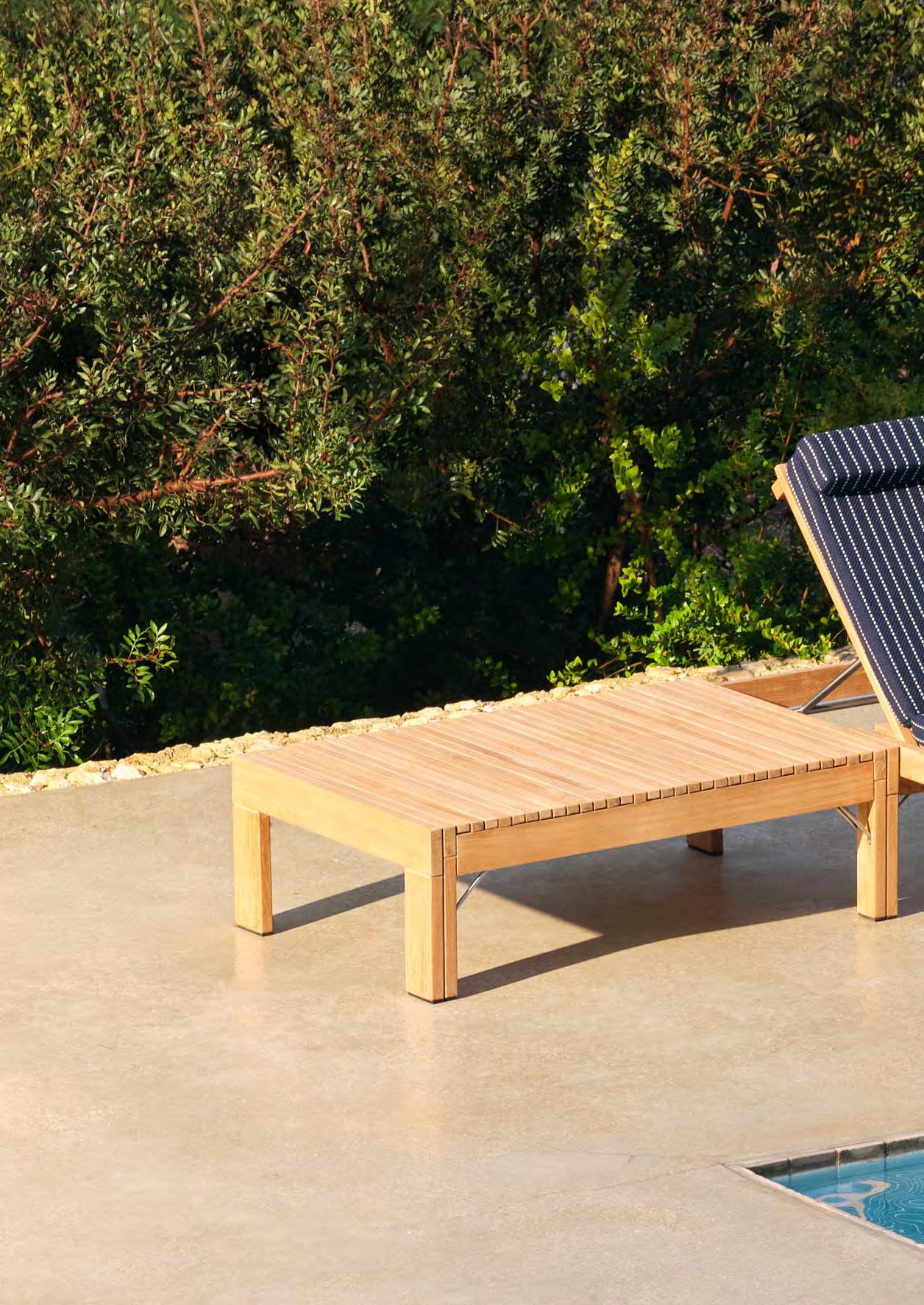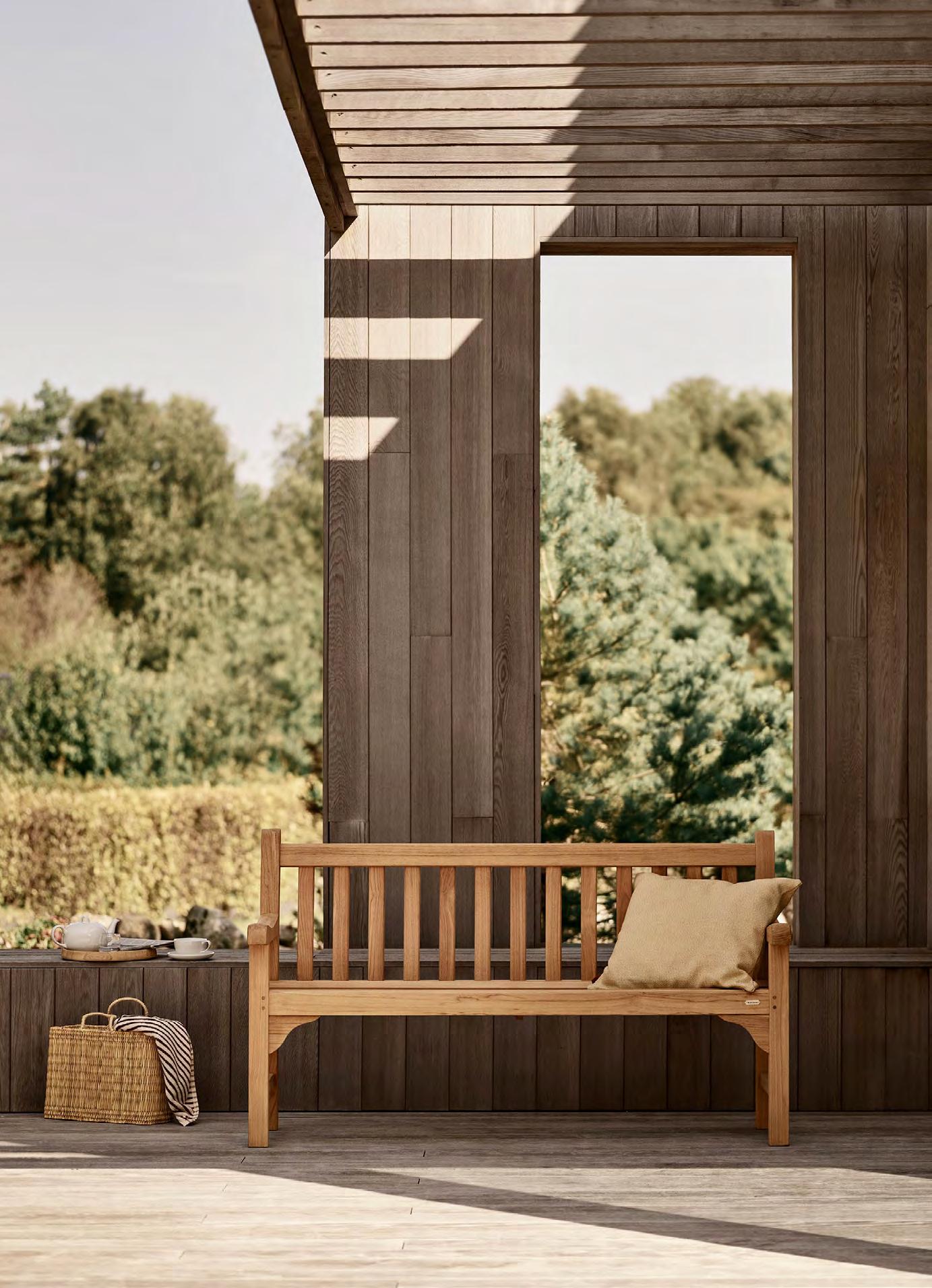 We use teak for most of our outdoor furniture, as it requires little care and maintenance. All of the teak in our outdoor furniture is FSC™-certified. The high content of natural oils makes the teak highly weather and rot resistant and is, therefore, an excellent choice for outdoor furniture. We only use core teak because it is richer in natural oils making it evenly grained, more weather resistant and longer lasting than the outer teak wood.