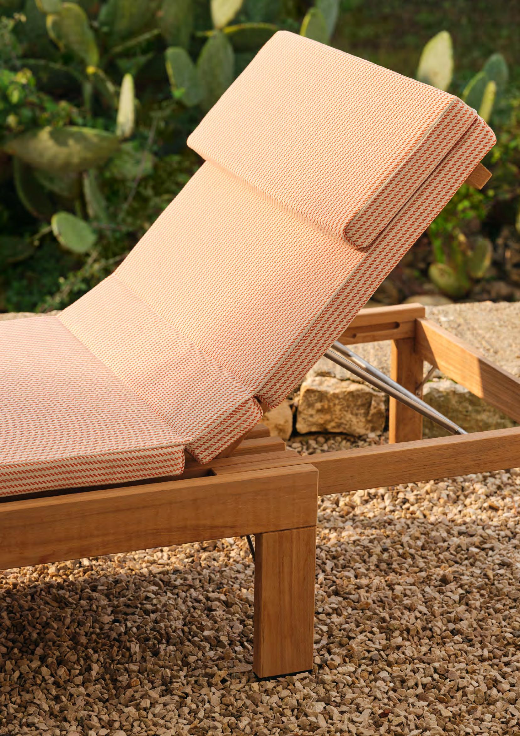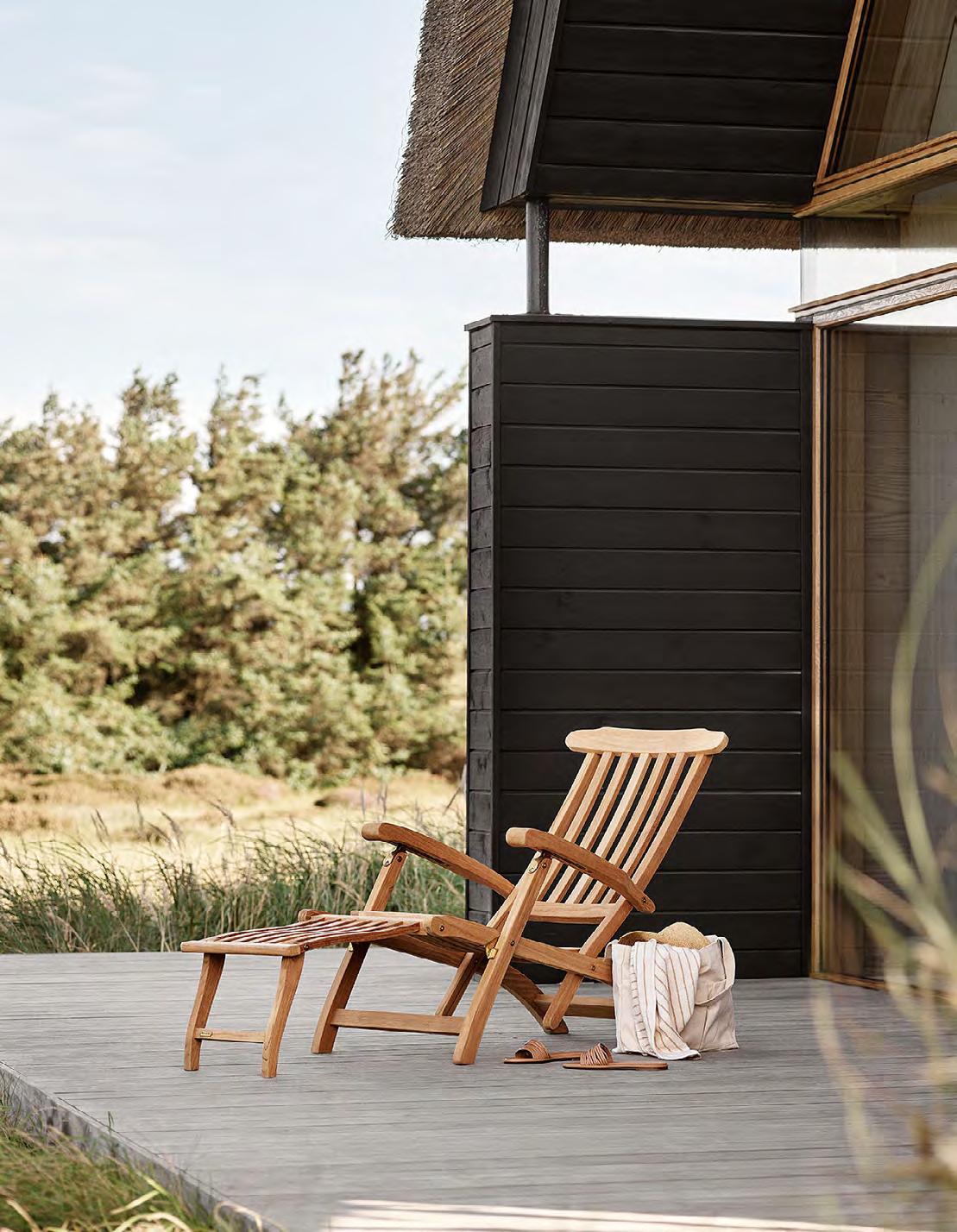 Crafted with comfort, quality and durability in mind, Between Lines deck chair and stool have a restful expression, perfect for enjoying life slowly in the great outdoors. Designed in collaboration with Danish designer Stine Weigelt.