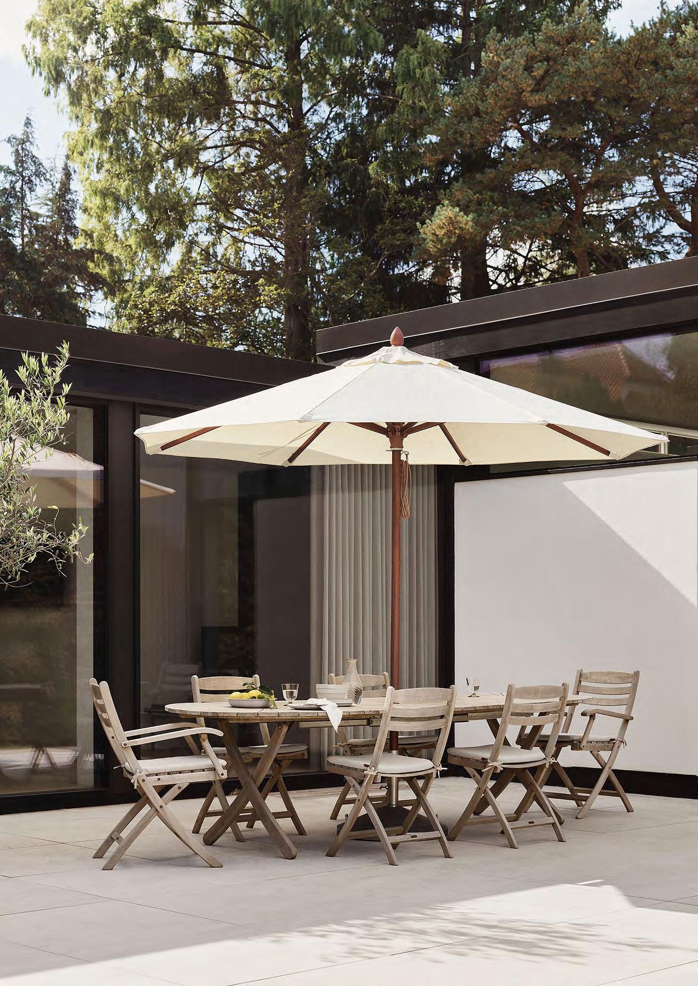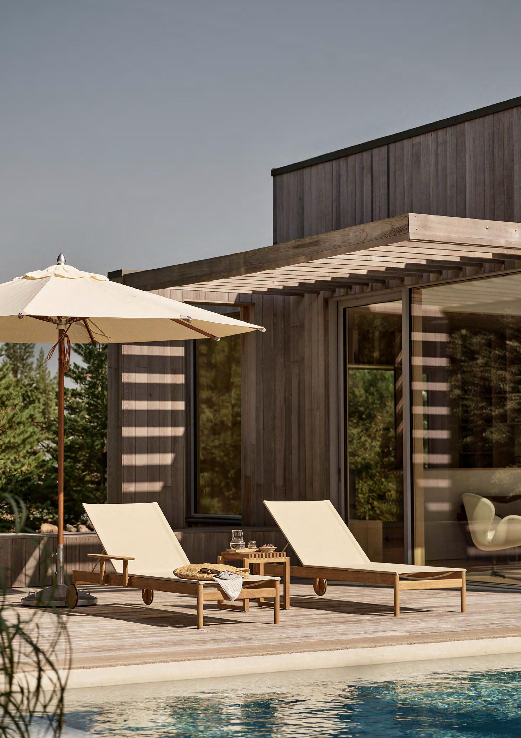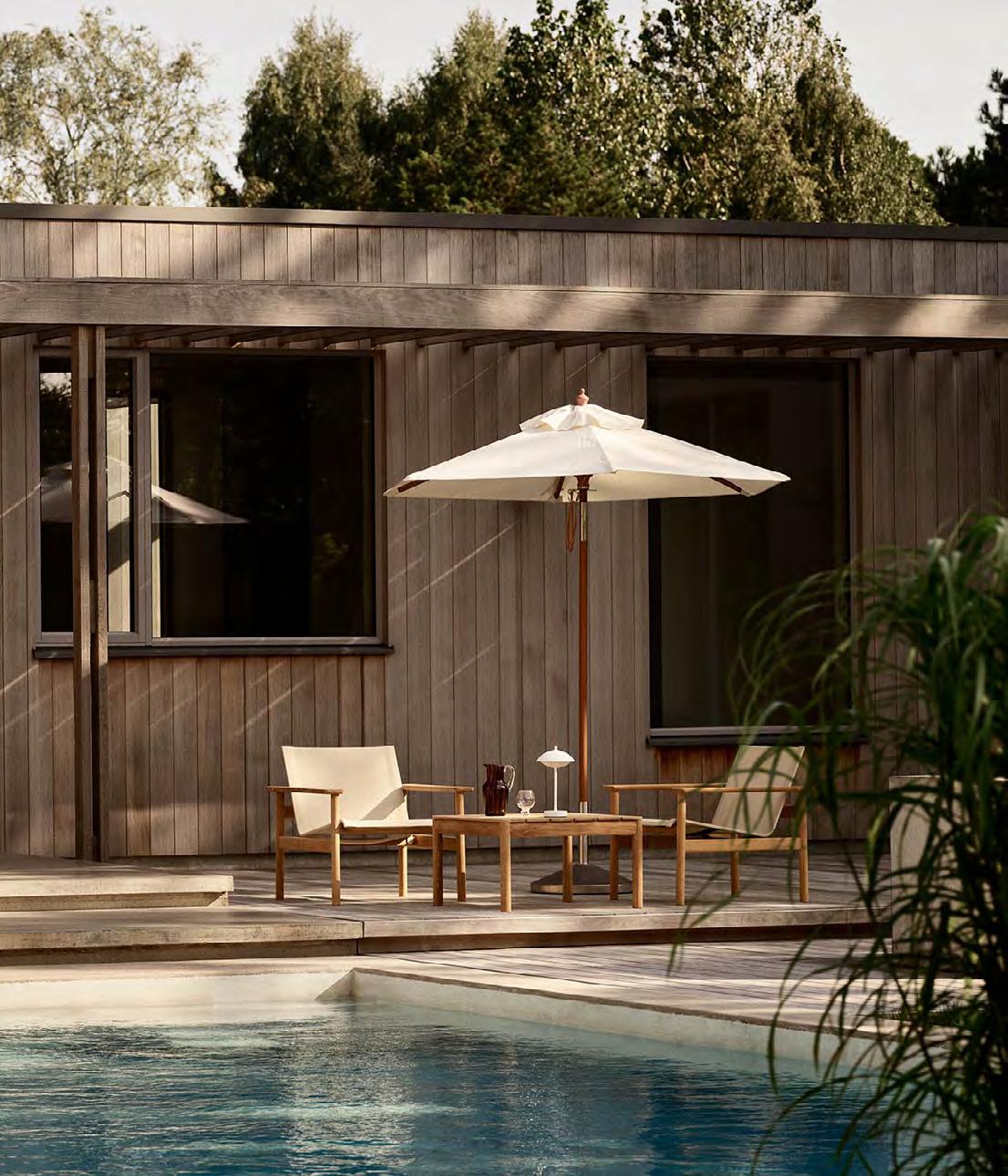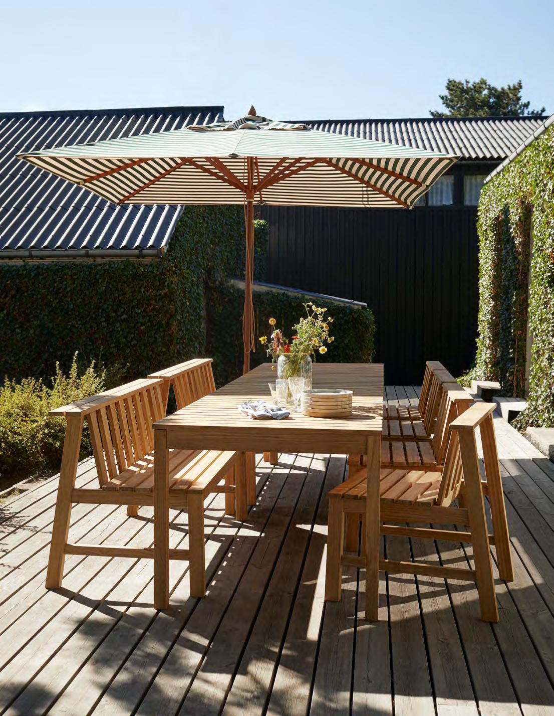 Discover our curated range of outdoor furniture, umbrellas and cushions. Co-created with renowned architects and designers, the collection’s design language originates from Danish functionalism and woodcraft traditions in outdoor furniture, transformed into contemporary and relevant pieces.