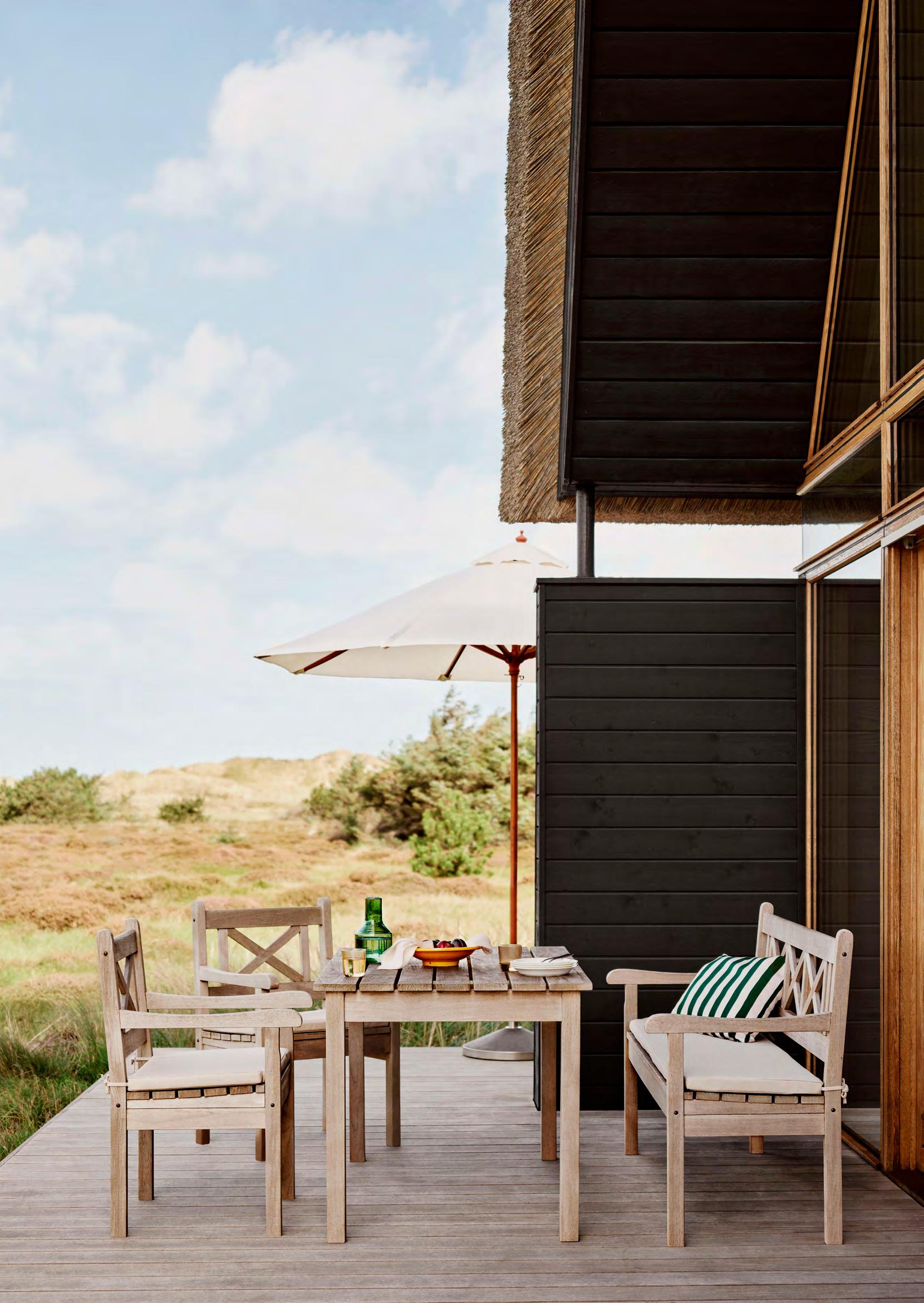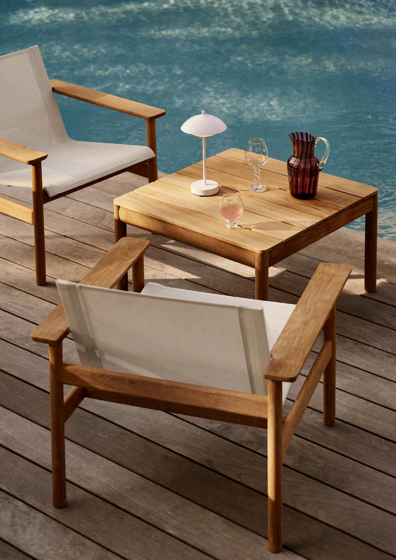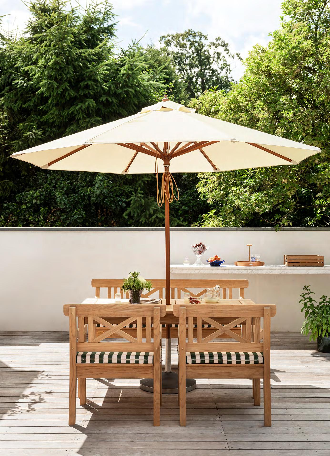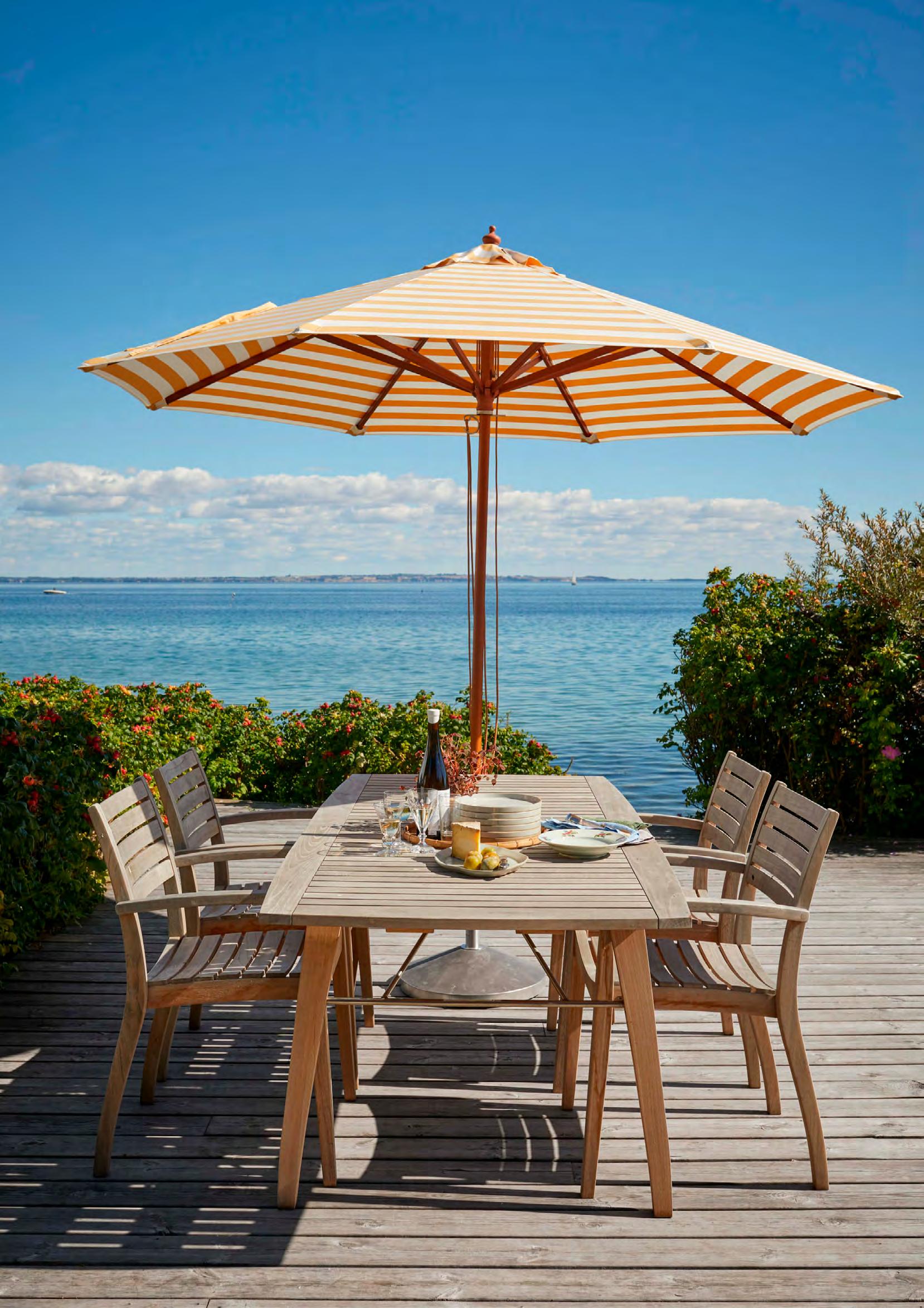 Discover our curated range of outdoor furniture, umbrellas and cushions. Co-created with renowned architects and designers, the collection’s design language originates from Danish functionalism and woodcraft traditions in outdoor furniture, transformed into contemporary and relevant pieces.