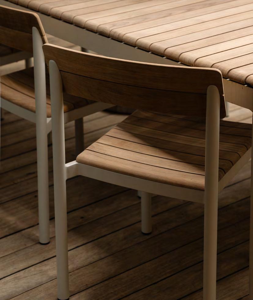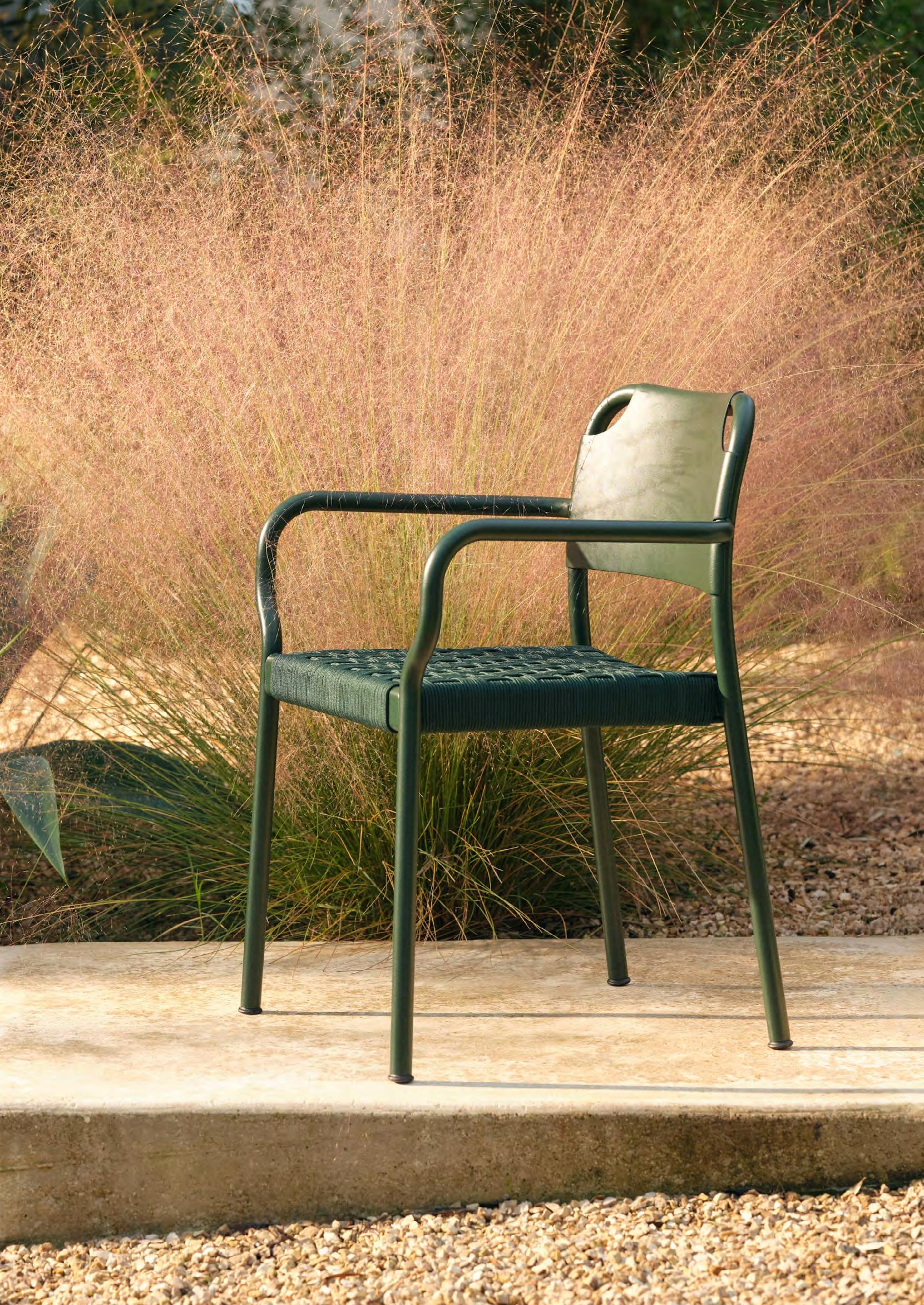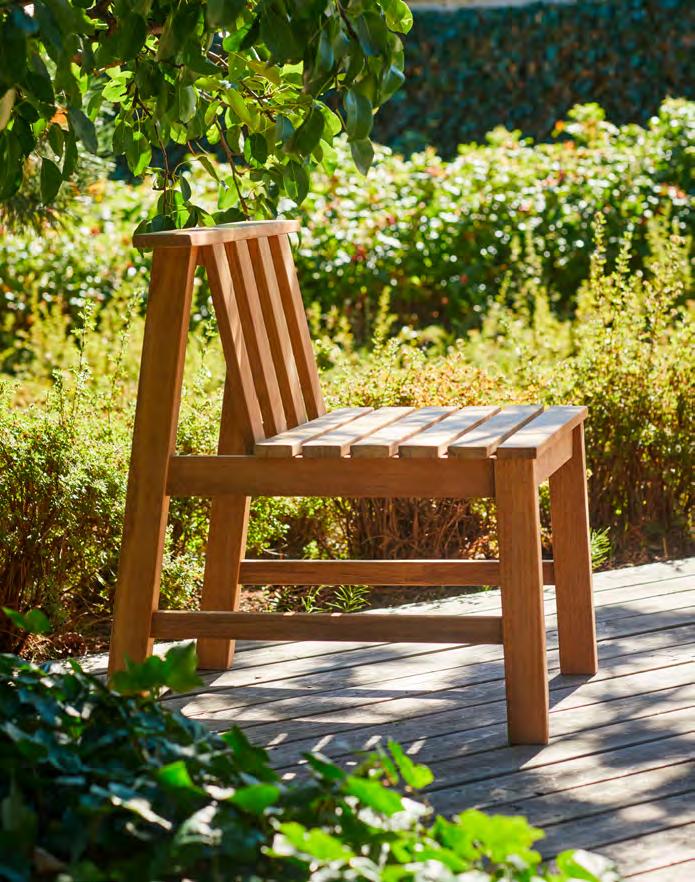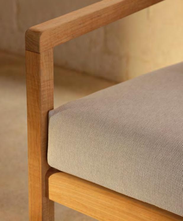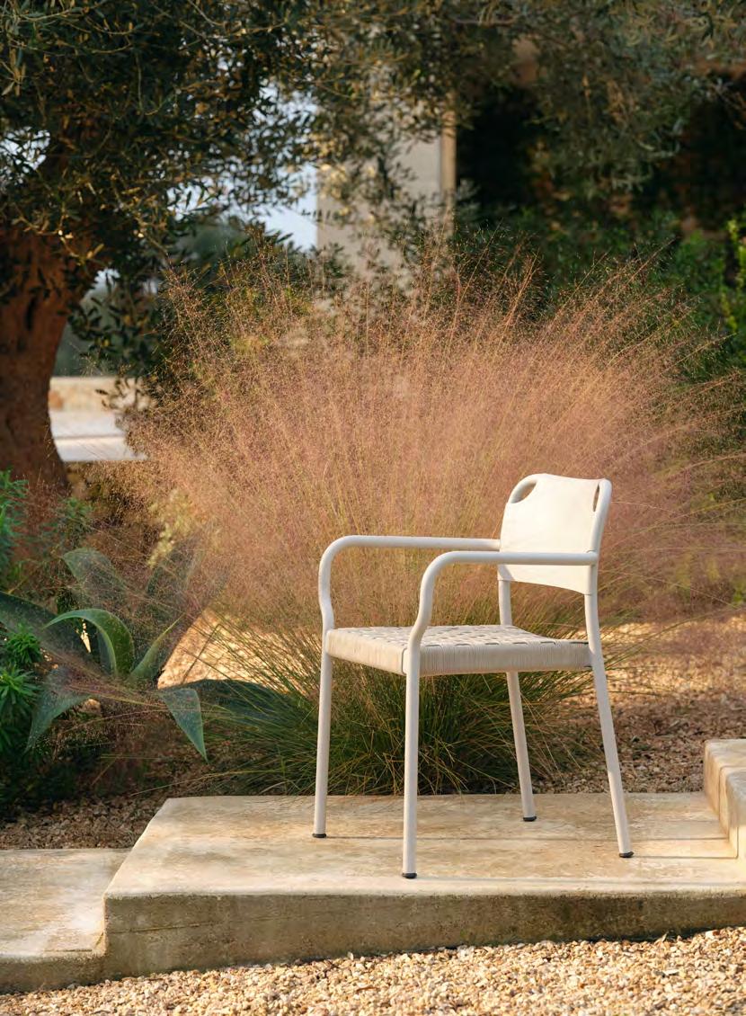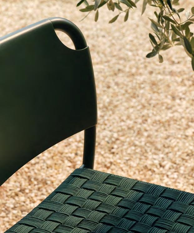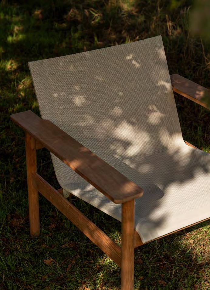 Comfort is at the heart of the design. A doublecurved backrest follows the body naturally, encouraging relaxed posture over long periods outdoors. This is paired with a handwoven seat where craftsmanship plays a defining role.