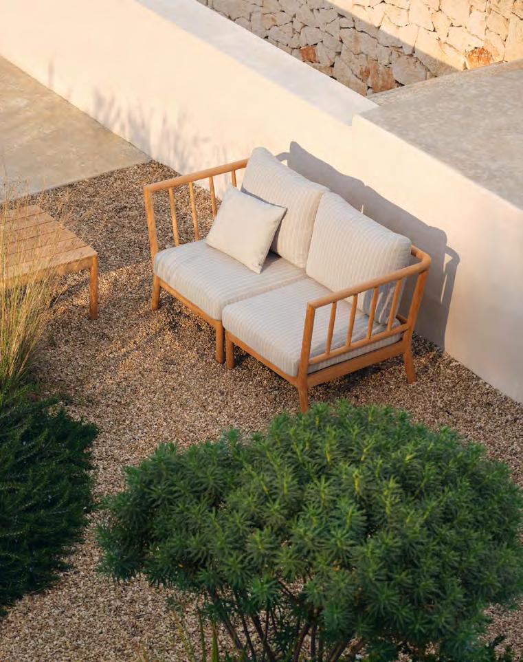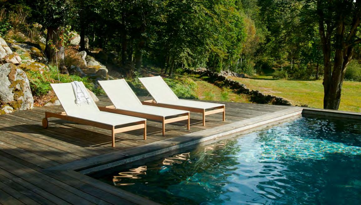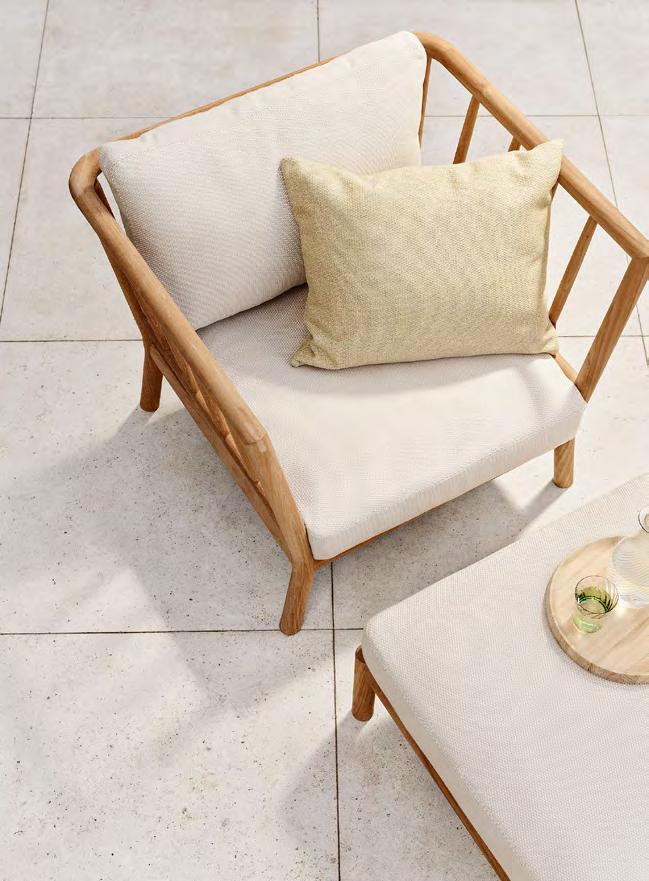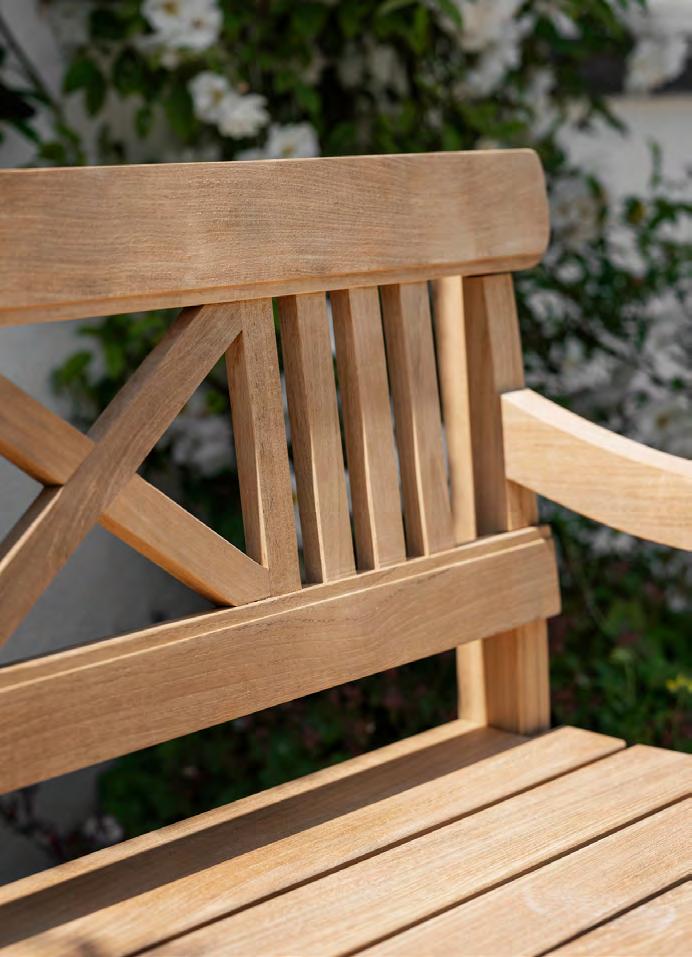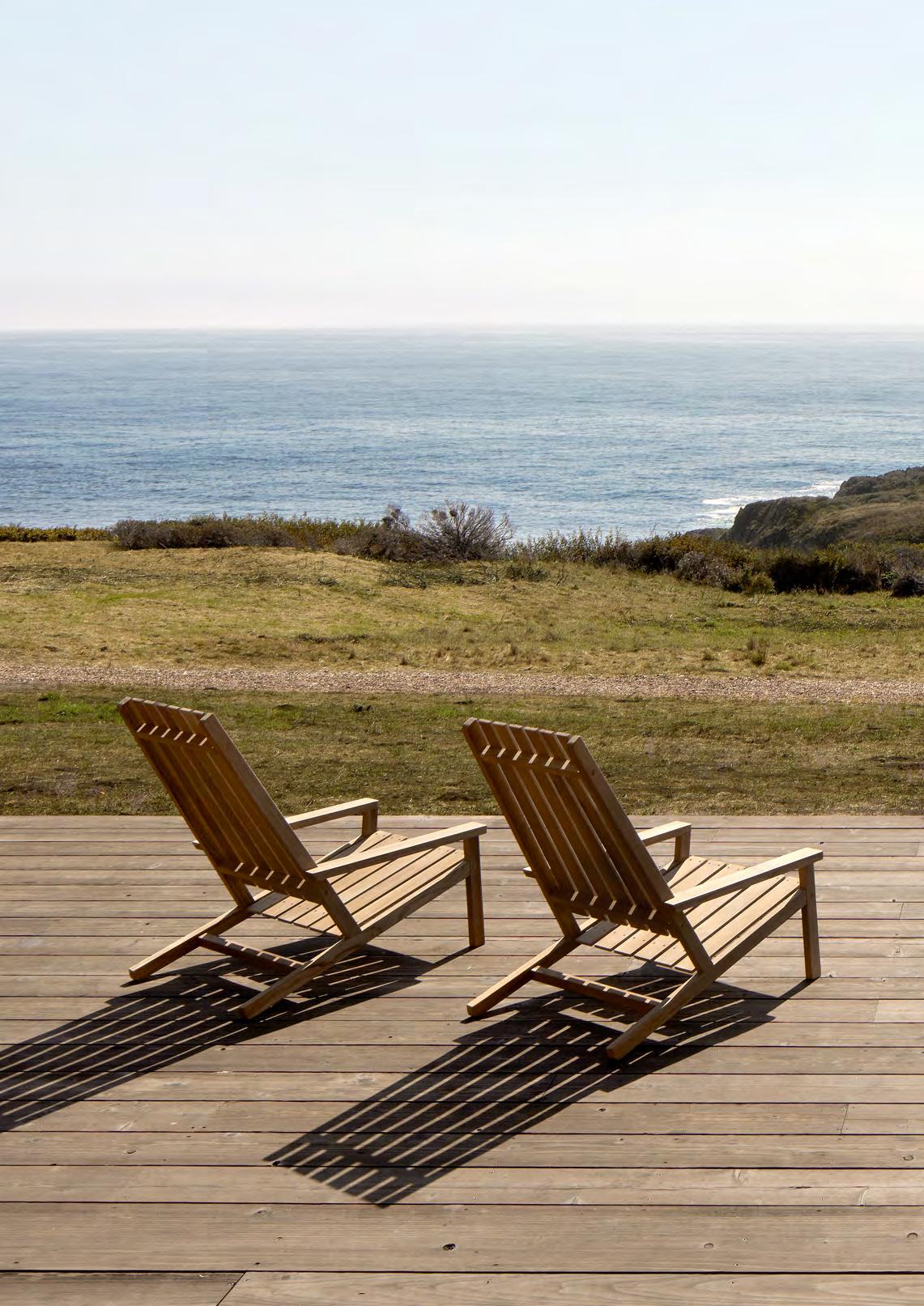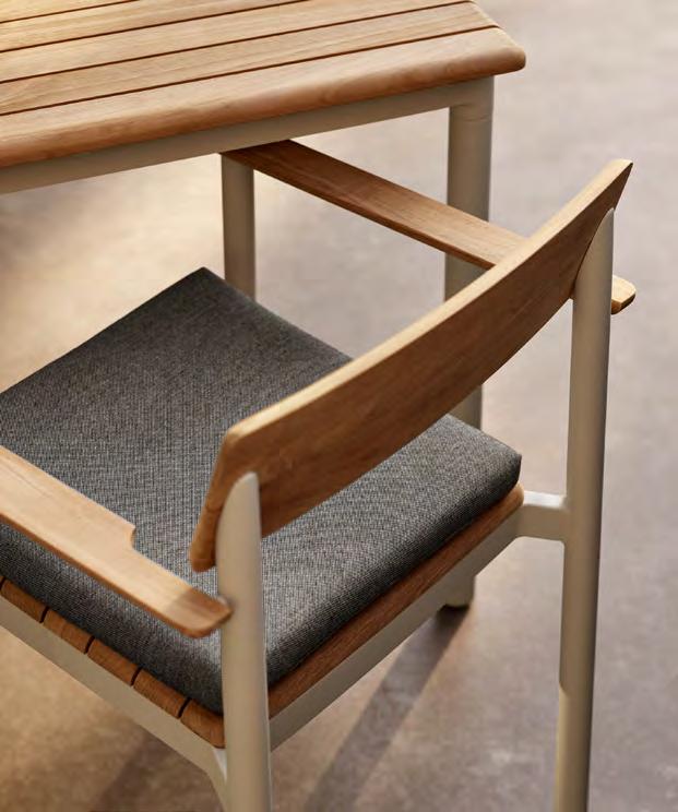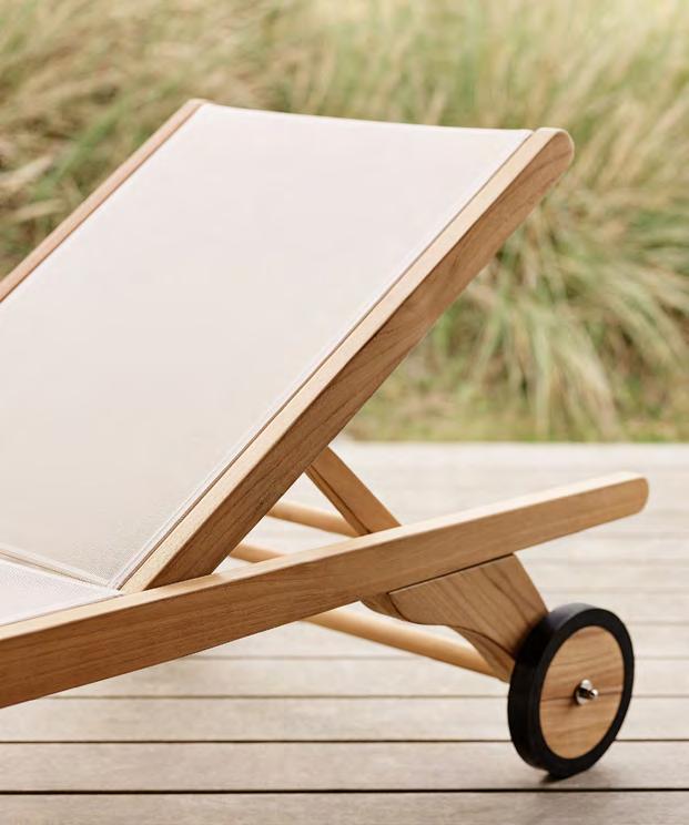 Comfort is at the heart of the design. A doublecurved backrest follows the body naturally, encouraging relaxed posture over long periods outdoors. This is paired with a handwoven seat where craftsmanship plays a defining role.