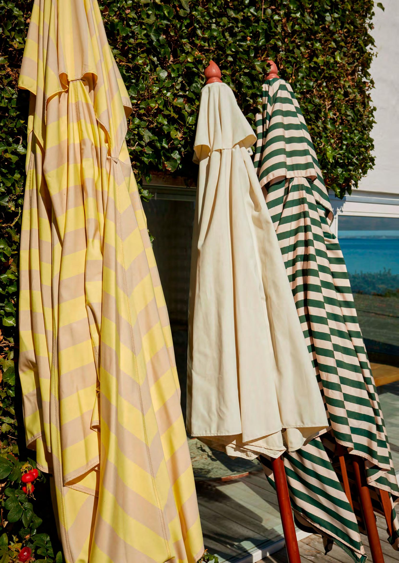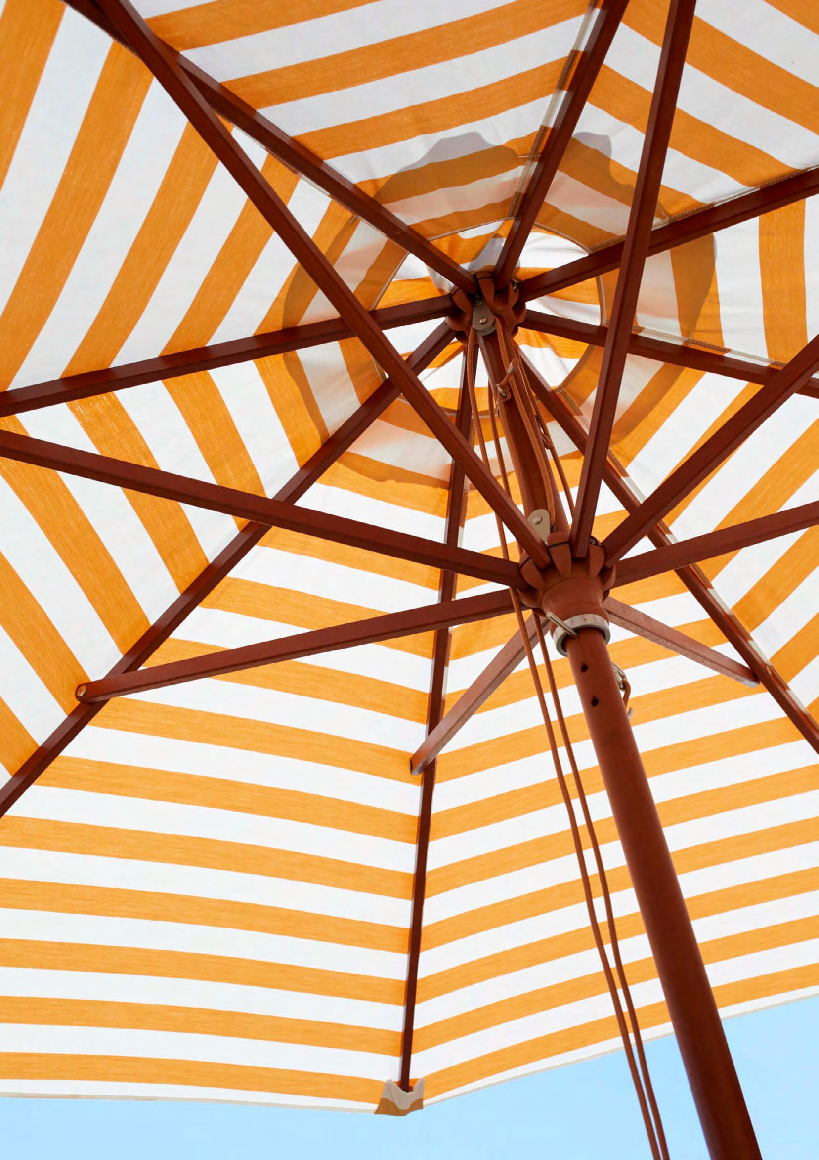 The umbrellas are beautiful to behold, highly functional, and skilfully crafted from long-lasting materials. The umbrellas are made from water and stain resistant textile with maximum sun protective rating (UPF50+), while the parasol poles are made from durable wood which is able to withstand wind and weather.