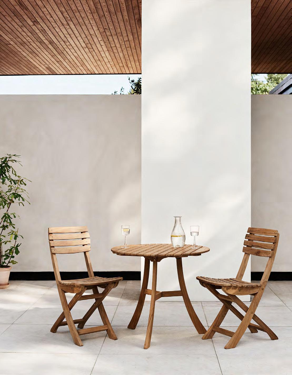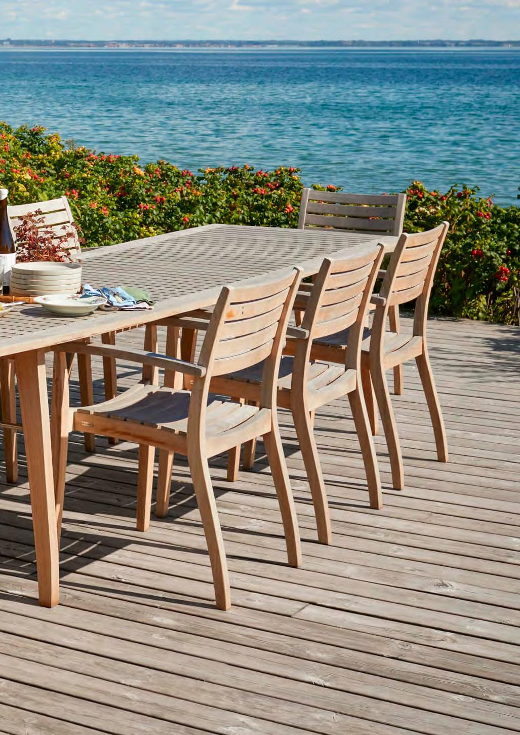 Selandia’s signature slight curves and elegant Nordic look with subtle French references that hint at long summer nights in the open air. Crafted from FSC™certified teak, the Selandia series of tables and chairs is made to age beautifully. Spare parts are available to ensure it lasts a lifetime.