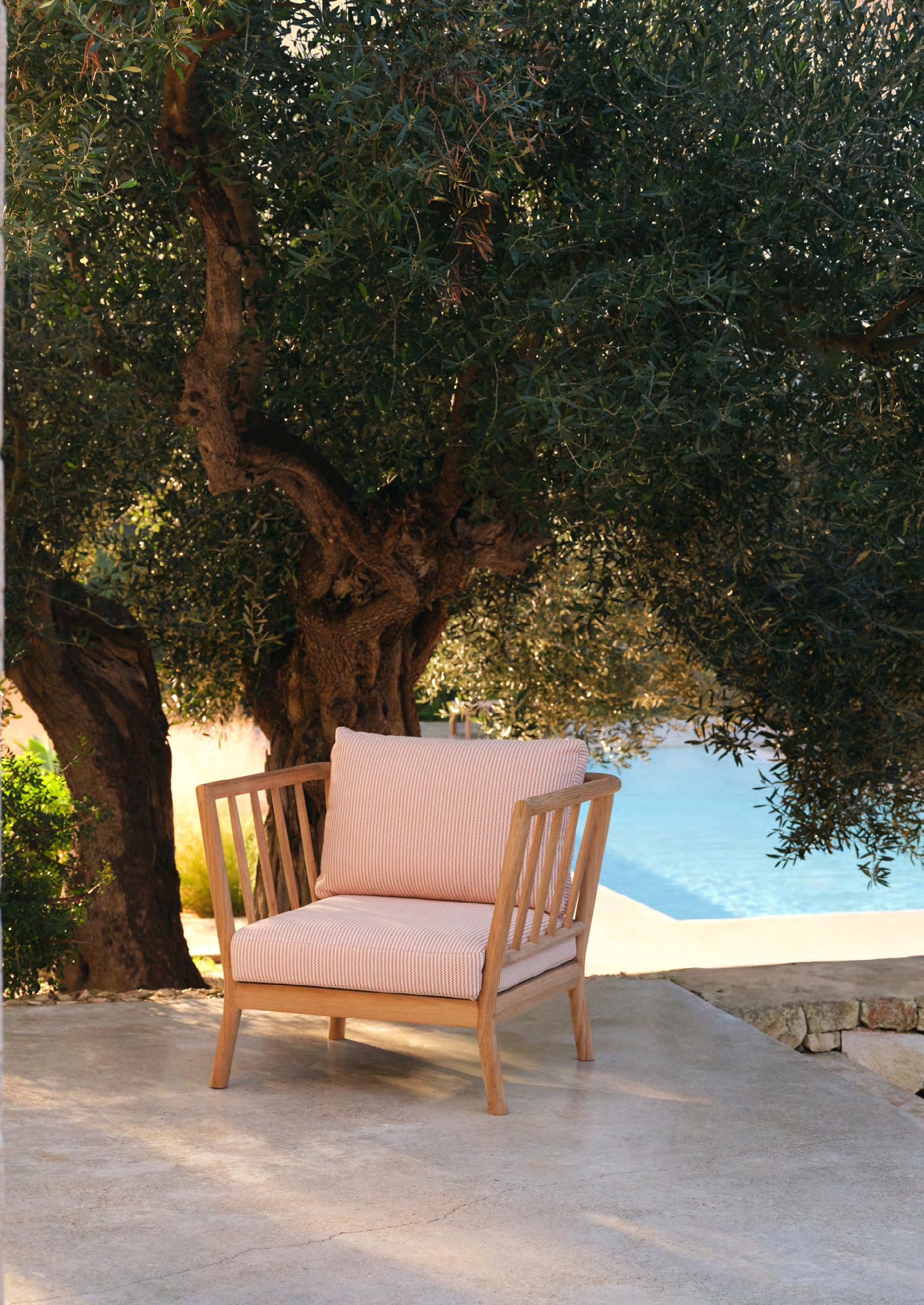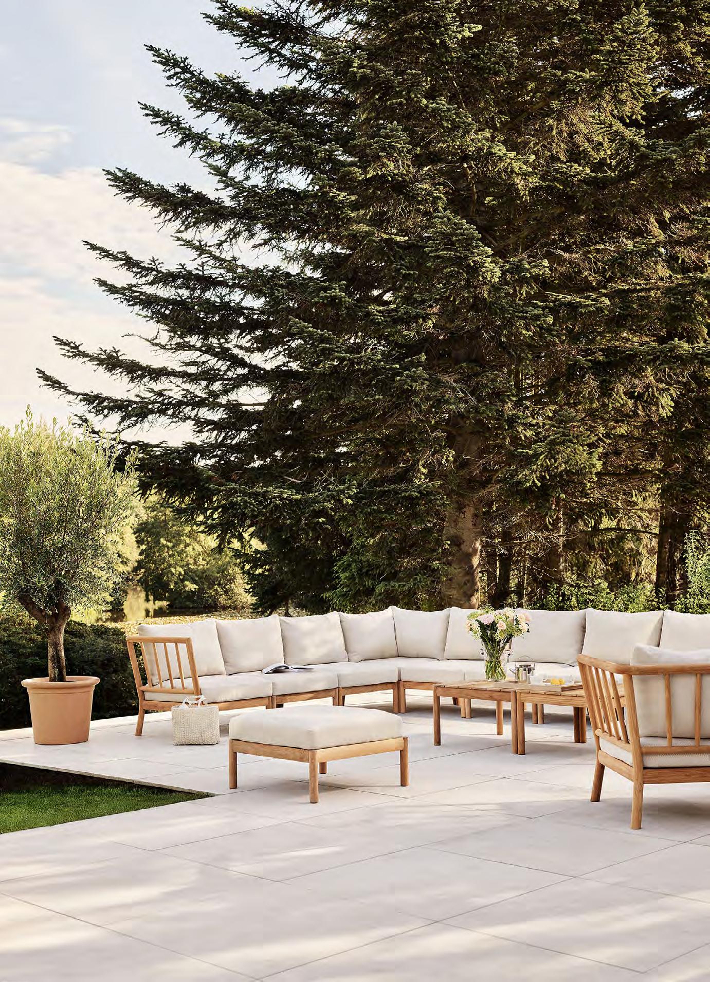 Tradition is a modular outdoor lounge series defined by its spindle-back frame and generous comfort. Crafted from FSC™-certified core teak and paired with soft, weather-resistant cushions, the series brings together precision woodcraft, naturally oil-rich teak, and textiles designed for lasting outdoor enjoyment.