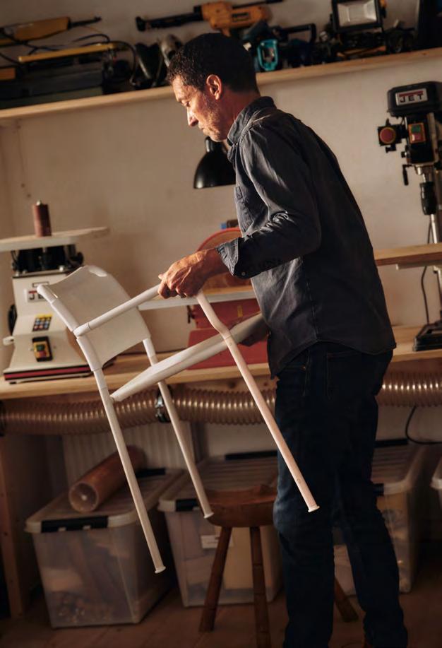“I think a chair should be very comfortable, no matter how long you sit. I’ve used a doublecurved geometry in the back. It allows you to sit in several ways, and the chair adapts better to the body with that form.”