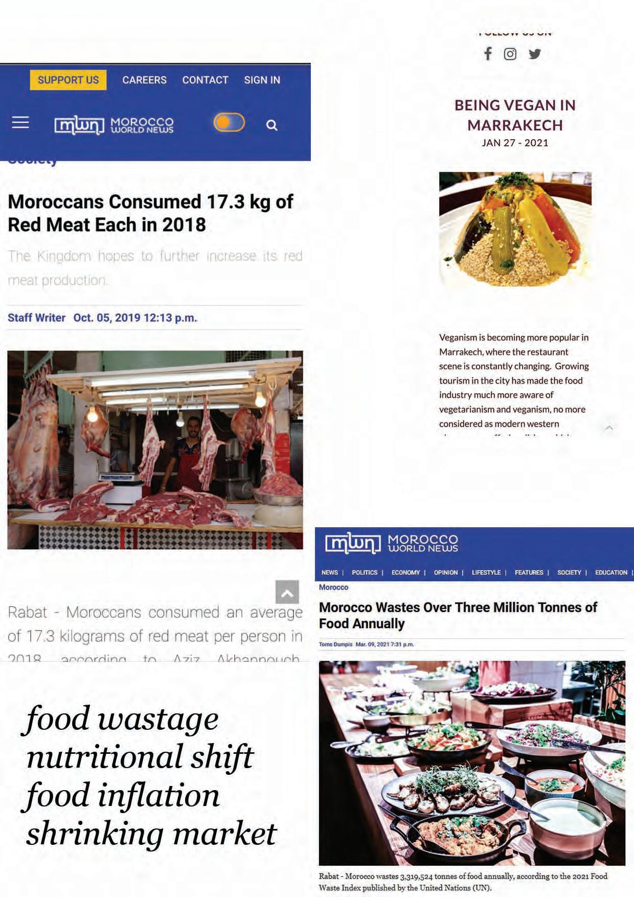 The internet based resources were used to collect news and media reportings on the current state of the art topics related to urbanism. The issue of food production, changing agriculture patterns and new food chains were reported in the news and research reports. Reports of international agencies like Food and agriculture Organisation (FAO), Morocco World News and research papers of leading universities in Morocco, Europe and USA were used to zero down to the issue of food chain
