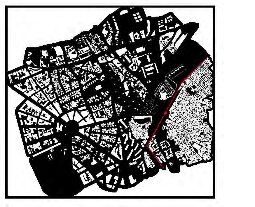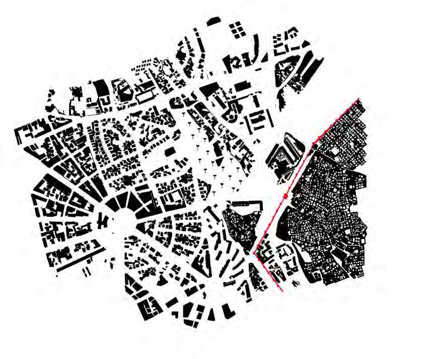 A bufer space of 20 meters have been given from the wall of Medina in order to restrict encroachment of the wall perimeter . Also greenery has been given with promenade for people to appreciate the historic wall on one side and the market place activity subtlety happening at semi basement level on the other