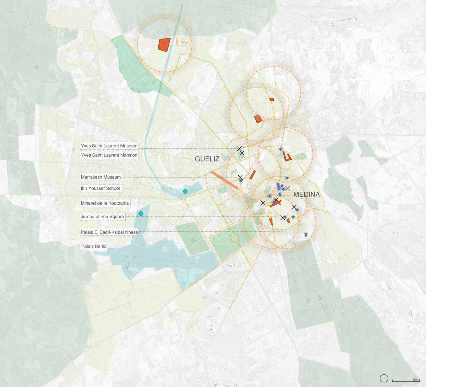 Marrakech is a 1000 year old city founded at the start of the second millennium. Majorly ruled and developed by Arabic chieftains, this geography of Marrakech is a melting point of many diferent layers of Maghreb history. The city was founded at the foothills of the Atlas mountains which was primarily dominated by Berber tribes and farmers. The position of Marrakech in between the mountain and the desert, in between the trade routes, in between the Mediterranean and Sahara desert and lately in-between Europe and Africa has set the city to many interesting urban conditions.