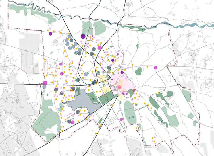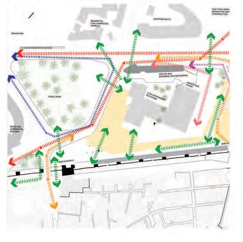FUNCTIONAL COMPLEXTY : The intervention area is flled with too many layers of functions , like bus stand, Taxi station, foot ball grounds, city bus sop, park, medina, shopping mall which has its own user groups and their food needs