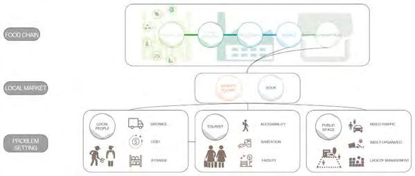 As per our urban analysis and on site analysis we found that the intervention area being part of transportation hub as a primary functional parameter which provides us the maximum of foot print , as per study of commuters and travelers we fgured out few daily life pattern, where people are directly or indirectly interconnected between transpiration hubs and food.