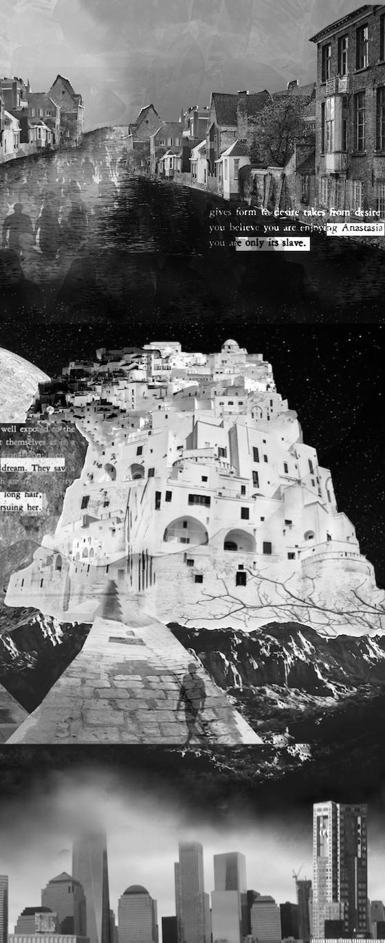 a digital depiction of the cities of anastasia, zobeide, and fedora, which came to life in the mind and works of author italo calvino.