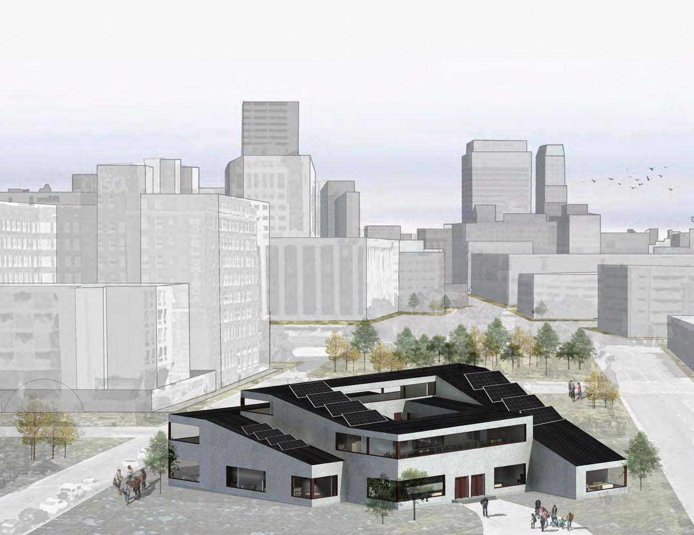 the solar paneled roofs slope toward the southern front of the building, providing direct access to memphis’ southern sunlight. the site is also equally close in distance to beale street and the musical heart of memphis, as well as many other residential areas.