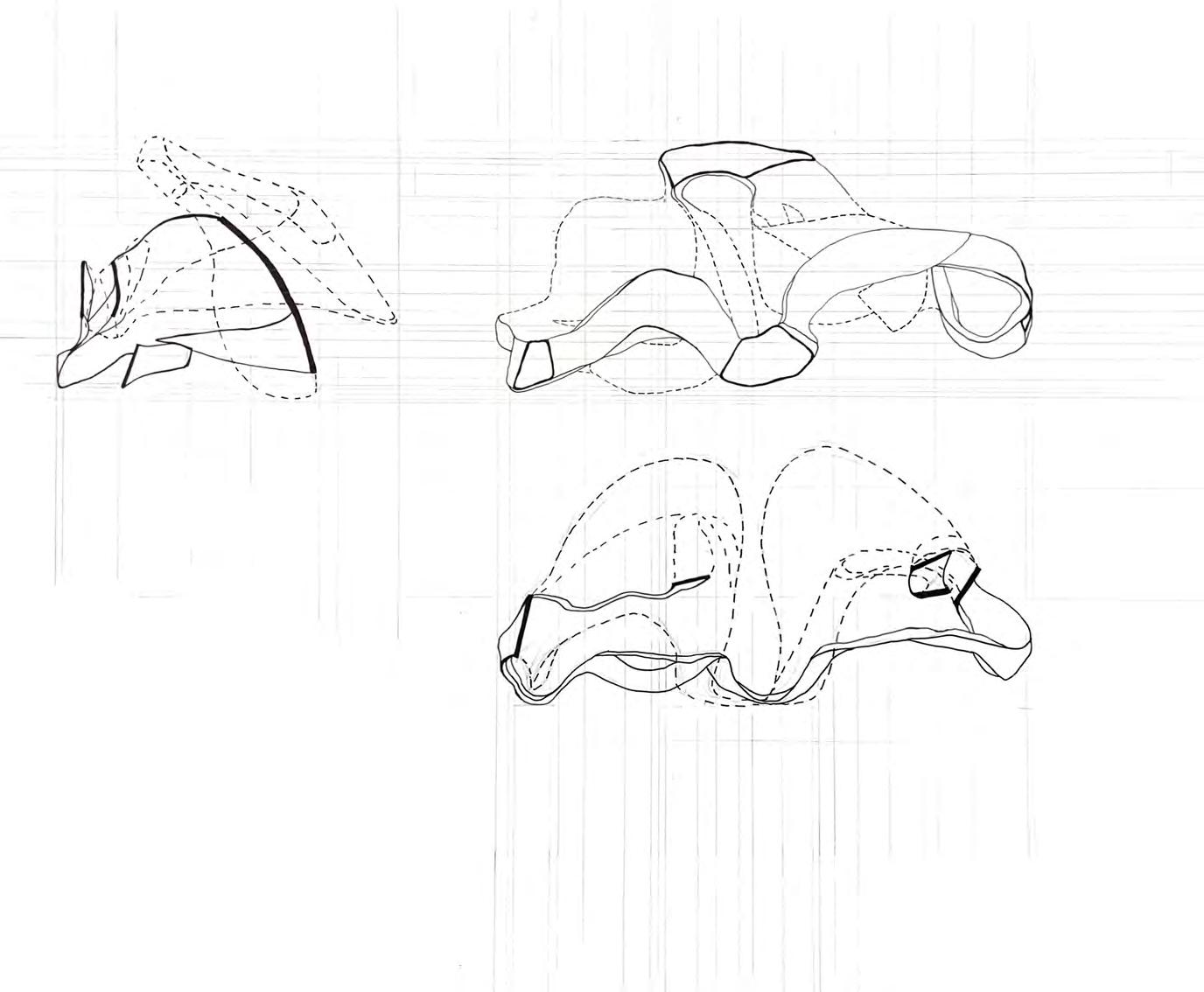 the sanctum is based off of diagrams tracking the movement of the center of the palm in relation to the elbow and the way in which their paths interact and intertwine.