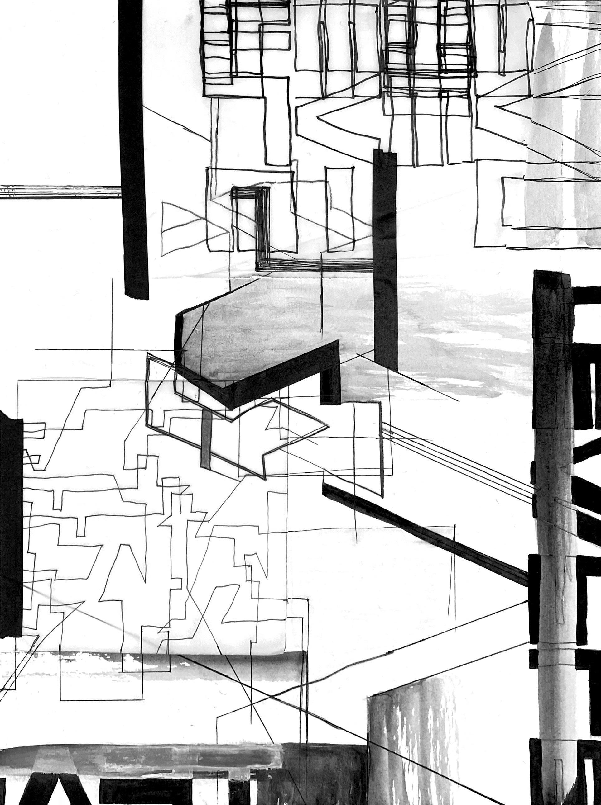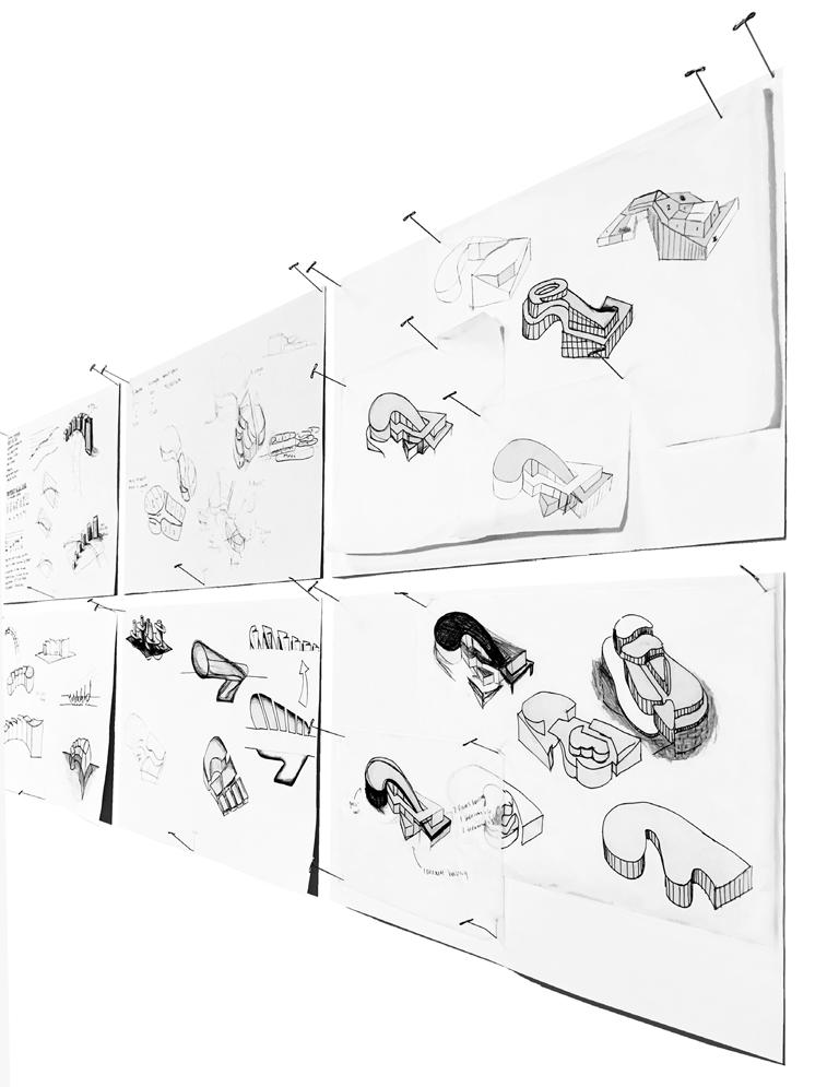by using negative space to create implied pathways, and in drawing inspiration from the letters of various languages’ calligraphy, a structure of sweeping and gestural movements was born. progressive studies in