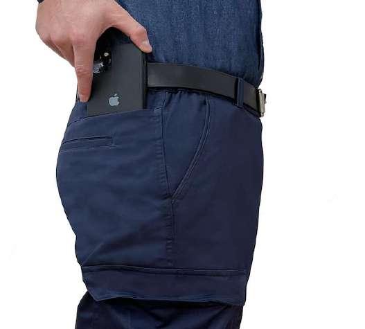 Water repellent technology, wrinkleresistant, sun protection UPF 50, 2 frontal pockets, 1 cargo pocket and 1 back pocket. 96% Polyester, 4% Lycra.