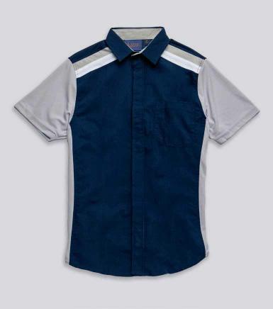 Camisa de manga corta con detalles de franjas en los hombros y tela Dry Fit en espalda y mangas.