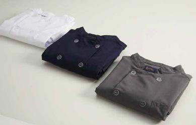 Diseñada con un cuello tipo Mao y bolsillos laterales. La versión en chamarra incluye bolsillo en el pecho.