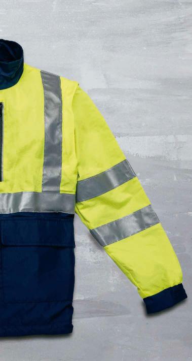 Manga larga, cierre frontal, pretina elástica en la parte trasera, cuenta con cintas reflejantes de 2”. Categoría 2 — protección contra arco eléctrico y zonas ATEX.