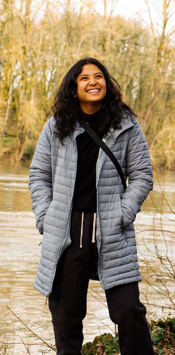 ▲ Bre walks at Monteith RiverPark, in Albany. Bre says that the water reminds her of Guam, which reminds her of her earliest memories.“Once I started realizing how much this world has to offer, I was humbled by my experience of being able to leave.” —Bre Tainatongo
