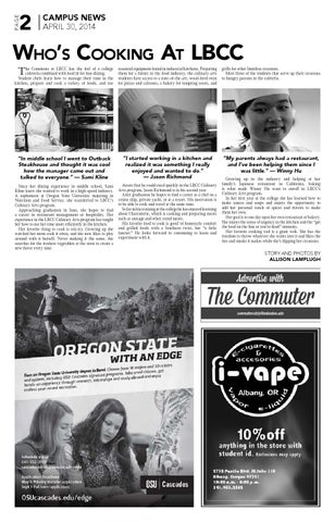 2 Who’s Cooking At LBCC CAMPUS NEWS APRIL 30, 2014