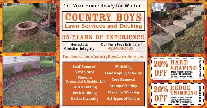 3314 West Market Street Johnson City, TN 423-946-1500 JOHNSON CITY’S NEW PREMIER PLACE FOR COUNTERTOP SALES AND INSTALLATION We install within 7-10 business days after template. Family owned and operated. 100’s of colors available. Hours: M-F 9-5 Sat 10-3 • GRANITEQUARTZGREENEVILLE.COM GRANITE | MARBLE | QUARTZ | QUARTZITE STONE COUNTERTOPS SALES • FABRICATION • INSTILLATION