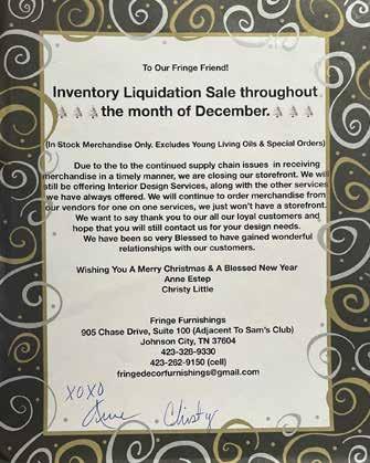 BRISTOL TN/VA GREENVILLE TN KNOXVILLE TN JOHNSON CITY TN NASHVILLE TN ASHEVILLE NC RALIEGH NC CHARLOTTE NC MYRTLE BEACH, NC GREENVILLE SC PIKEVILLE KY WINSTON-SALEM, NC theloafer.net |December 13, 2022 30