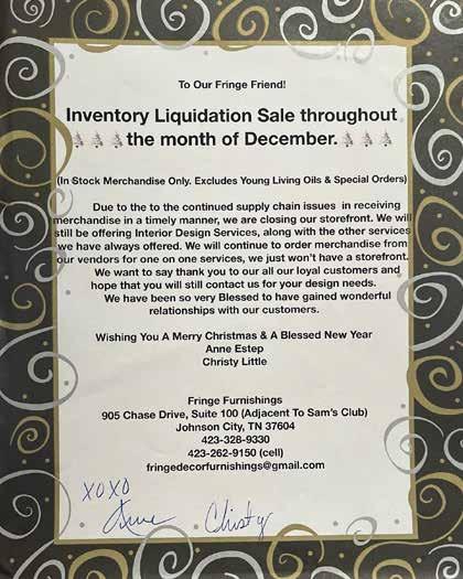 Let’s all focus on a happy, prosperous, healthy and happy new year for 2023! Thank you so much for every single ounce of support you have given to us in 2022! We love all of you! Love, Lisa Durbin Publisher 04 Spotlight 07 Karaoke 07 Trivia 08 Puzzle Page 09 Pets of the Week 10 Something Blue Bridal Fair 11 Things To Do 12 Big Ugly Hullabaloo: The Work of Eric Drummond Smith 14 Bike Events 22 WQUT Concert Schedule 15 Beanz Biker Corner Happy New Year 17 Social Sentiments: How Does Your Target Audience Talk to Each Other 19 Tea Time with Appalachian Barbie: Baby Steps 21 Pop Life: The Fabelmans 23 Batteries Not Included: Resolutions and Wishes for 2023 LBD FAMILY MEDIA theloafer.net |January 3, 2023 2