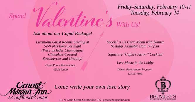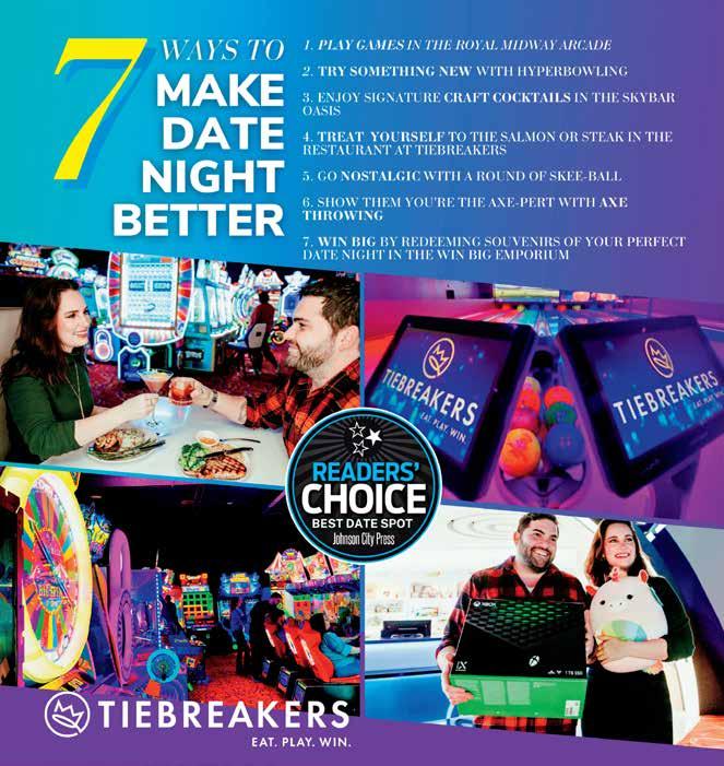 Let’s Get Social! your week’s line-up columns & reviews NOTE FROM THE PUBLISHER Hello Friends! How is your January going so far? Are you still holding up on those resolutions or did you make any? My husband said his gym has been packed this month. I say kudos to them! I am working on eating better and would love to hear your thoughts and ideas. I did download an app called Yuka and it has been very helpful. You just scan a package and tell you if you should buy it. That has been eye opening to say the least! Don’t forget about us for all of your advertising needs in print or online. We would love to work with you. Until then please have a safe week? Love, Lisa Durbin Publisher 03 7 Ways to Make Date Night Better 04 Spotlight 06 ETSU Storytelling Presents Story Slam 07 Tri-Cities Nightlife 08 Puzzle Page 09 Pets of the Week 11 Things To Do 12 Tri-Cities Faces and Places 14 Bike Events 16 February 23: Sycamore Shoals Schedule 18 Tusculum University Providing Free Tax Preparation Services at Three Locations in East Tennessee 22 WQUT Concert Schedule 15 Beanz Biker Corner Winter is Here 17 Social Sentiments: Are You Connecting with a Brick Wall? 19 Tea Time with Appalachian Barbie: Weekend Getaway - Nashville 21 Pop Life: Glass Onion: A Knives Out Mystery 23 Batteries Not Included: The Morning Disconnect LBD FAMILY MEDIA theloafer.net |January 24, 2023 2