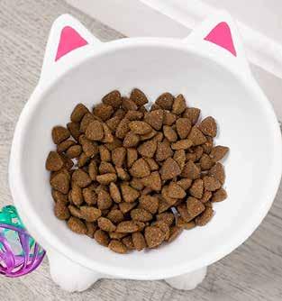 Lucy will sit along the side of the bowl and settle her front two paws down in a little back-andforth motion. Then she’ll look at the bowl, and then she’ll look at you. She’ll make direct eye