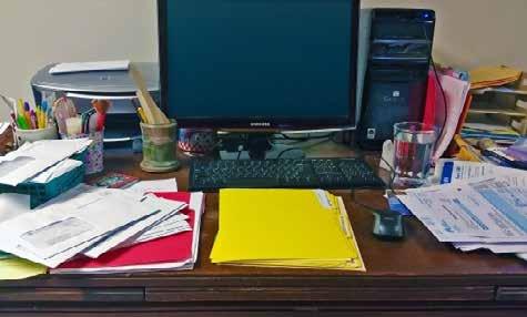 There are crumpled papers, two sets of Post-it note pads, two months' worth of correspondence