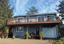 SPECTACULAR HOME OCEAN VIEWS ON 1/2 ACRE. 4BD, 3BA. Entrance into stunning sunroom & Rec. room, wood stove insert, wet bar, ¾BA & office/BD. Main level peaked 25ft ceiling, ocean views-great room, propane FP, dining & gourmet kitchen, 2 guest BD, full BA & laundry. Primary Suite, walk-in closet, propane FP viewed from BA & BD. Wrap around deck, BKY patio, greenhouse-power, waterfall. Insulated shed, attached 2 stall garage. Nicely landscaped. Seller licensed WA real estate broker. MLS# 2492926 • $924,900