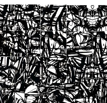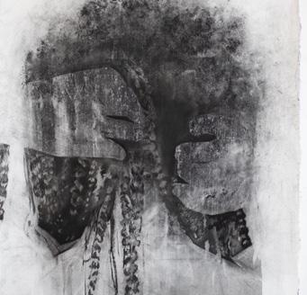 Vector Charcoal, acrylic, spray paint, and paper on panel