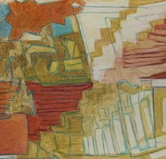 This work expresses the delight I feel when moving around my living spaces. I do not see these as figurative illustrations, but rather a synthesis of this experience as geometric groupings, colors, and lines, resulting in a rhythmic description of what I have seen.