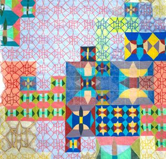 As a papermaker, I engage in a direct, intimate conversation with my materials through a meditative, arguably monotonous process. This repetition allows me to slow down, immerse myself in the rhythm of the work, and connect with the world around me. Visually, my work draws inspiration from the geometric patterns in quilts and vintage textiles, as well as patterns from the natural world.