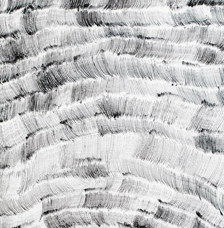 My work uses repetitive, small-scale gestures to build landscapes based on the memory of time and place, referencing the tenuous relationship we have with the natural world. The drawings are assembled from individual sheets to form vast scenes of mountains, seascapes and natural forms.