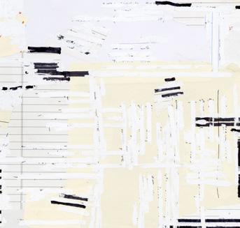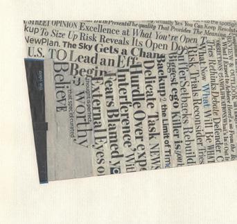 My collages feature years worth of personal notes and sketches. Using correction tape, white-out, and markers to redact text, the works evoke themes of memory, privacy, mystery, the hidden, information accuracy, and the nature of meaning.