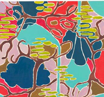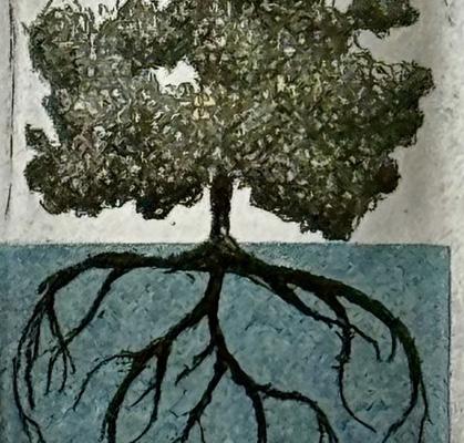 I draw inspiration from different trees around my community in Lincoln, Nebraska and other meaningful locations. My arboreal imagery acts as a symbolic language to reflect human interconnection: we need our farmers, teachers, and artists just as a forest needs its trees.