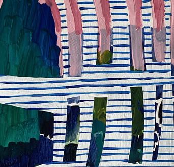 My work explores visual and contextual balance through the tension of opposing elements. Each painting emerges through processes of replacement, dissection and reconfiguration. This approach is informed by philosophical and spiritual theories of opposition and is conceived as meditative observations of the world around us.