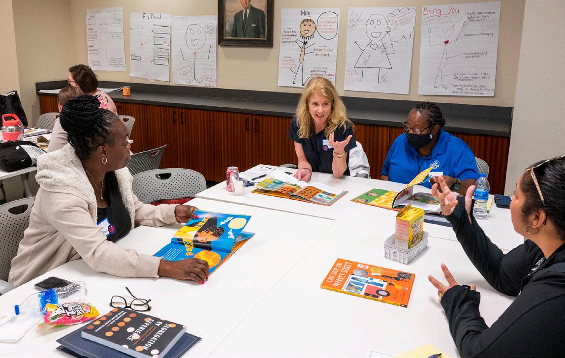 Early childhood educators discussing the use of picturebook "Last Stop on Market Street" to help their students understand identity and agency.(Photo by Jay Godwin) Y'all means ALL speaker Shane Whalley directing teachers in an activity to better support their LGBTQIA+ students and community. (Photo by Jay Godwin) 2022